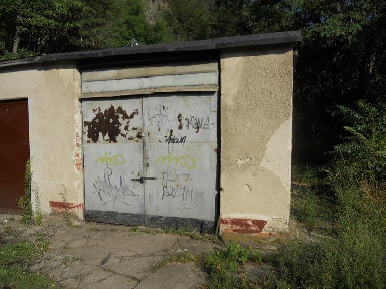 Garáž je přízemní, má jedno nadzemní podlaží, nemá žádné podzemní podlaží a není podsklepená. Odhadem byl objekt postaven v 70. letech 20 stol. Základy jsou betonové bez izolace, konstrukce objektu je zděná, tloušťka stěn je cca 30 cm a strop je pravděpodobně řešen z dřevěných trámů. Má pultovou střechu, střešní krytina je tvořena živičnou lepenkou, klempířské prvky chybí. Vnější omítky jsou břízolitové a objekt není zateplen. Garáž má zastavěnou plochu 32 m2. Podlahová plocha garáže se dohaduje cca ve výši 25,00 m2. Objekt má pravděpodobně vápenocementové vnitřní omítky. Okno tvoří vyzděné luxfery, vrata do garáže jsou kovová dvoukřídlá, podlaha pravděpodobně betonová. Do objektu je pravděpodobně zavedena elektrická energie uvažuje se, že je v současné době odpojeno od distribuční sítě. Žádné další sítě se nepředpokládají, ani vytápění objektu. Stav objektu je spíše zanedbaný. Fasáda dožitá, vrata dožitá, střecha pravděpodobně v mezním stavu. Vnitřní omítky, podlaha pravděpodobně funkční – zastaralé. Rozvody elektřiny (pokud jsou k dispozici) se předpokládají dožité. Pozemek, na kterém je stavba garáže postavena, je rovinatý. K objektu lze přijet bez problému po zpevněné obecní cestě. Obhlídka nemovitosti byla provedena pouze z vně objektu, objekt uzamčen, stavebnětechnický stav se dohaduje dle vizuálního posouzení stavby, výměra se dohaduje dle plochy zastavěné. Osobní auto zn. Audi je nepojízdné a určené k likvidaci, auto stojí na parkovišti v Ústí nad Labem, Střekově před Obvodním oddělením Policie ČR, Truhlářova ulice. Bez hodnoty.