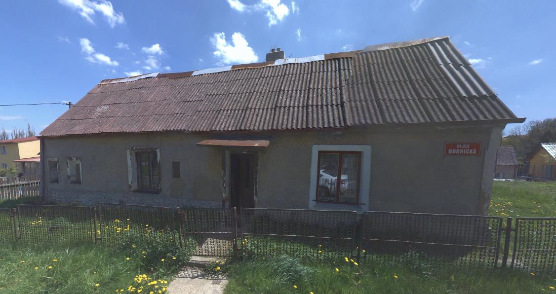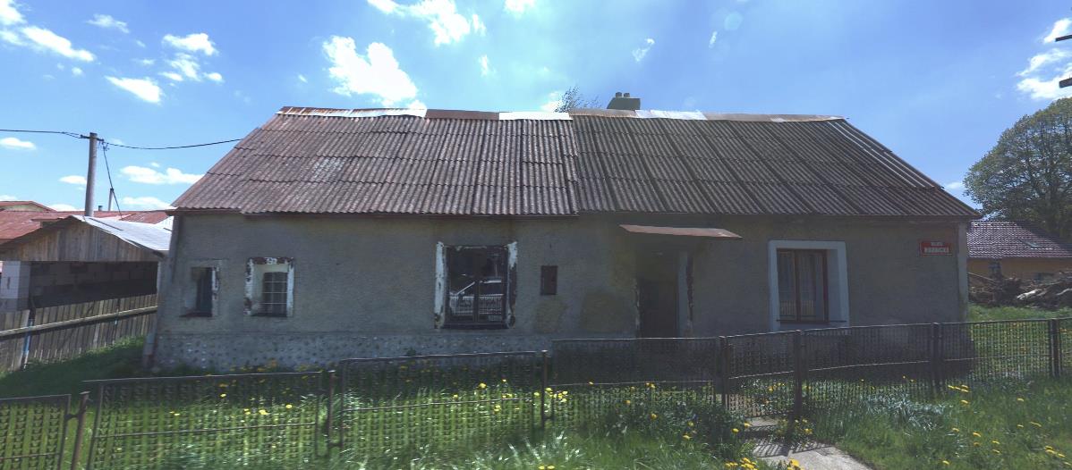 Zděný, přízemní, volně stojící dům, napojený na EL, s přístupem a příjezdem z průjezdní silnice obcí. Dům ve velmi špatném technickém stavu. Zastavěná plocha cca 83 m2, užitková plocha 66 m2. Dům se blíží k demolici- vyboulené štítové zdivo, trhliny ve zdivu, bez většiny podlah, bez části zárubní i dveří, nefunkční umyvadlo, poškozená krytina.