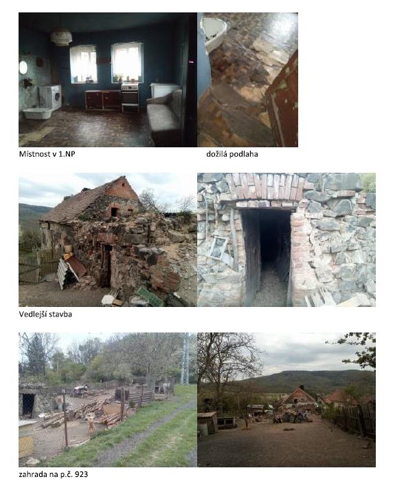 Rodinný dům č.p. 32 je samostatně stojící, tvořící součást pozemku čís. parcely St. 49 (zastavěná plocha a nádvoří), k.ú. Lukov u Bíliny. Dům je v malé části podsklepený, s jedním nadzemním podlažím a půdním prostorem v sedlové střeše. Interiér byl prohlédnut pouze z malé části, zahrnuje přízemí vstupní chodbu a tři místnosti, sklep je tvořen malou skladovou místností, střešní prostor je užíván jako půda. Vstup do domu je ze dvora, z jihovýchodní strany domu. Základy kamenné bez izolací proti zemní vlhkosti, svislé konstrukce převažují kamenné, v malé části, ve štítech cihelné zdivo, střešní konstrukce dřevěná sedlového tvaru, střešní krytina tašky, klempířské výrobky chybí, stropy pravděpodobně dřevěné trámově, s rovným omítaným podhledem, podlahy dřevěné prkenné kryté PVC, okna dřevěná dvojitá, dveře náplňové, vnitřní úprava povrchů vápenocementová štuková s výmalbou, vnější úprava povrchů pouze v malé části pozůstatky vápenné hladké omítky. V den prohlídky není dům vytápěn, elektroinstalace pravděpodobně pouze světelná, funkčnost nebylo možné ověřit, rozvody vody a kanalizace nebylo umožněno zjistit, otázka nebyla zodpovězena, v místnosti v přízemí se nacházela volně stojící malá vana, volně stojící pračka a volně stojící kuchyňský sporák. Zjištění napojení spotřebičů nebylo umožněno. Stáří stavby nebylo doloženo, podle architektonického slohu lze usuzovat dobu vzniku více než před 100 lety, v současnosti je dům v zanedbaném stavu, prakticky bez vybavení, v 1.NP je patrná zvýšená vlhkost zdiva a stropu, jsou zde viditelné vlhkostní mapy a plíseň, pravděpodobně po zatékání narušenou střešní krytinou, stav stropní konstrukce nebylo možné zjistit. Rovněž funkčnost domovních rozvodů nebylo možné zjistit. Stav a vybavenost neumožňuje užívání bez vyšších investic. V příslušenství rodinného domu je užívána vedlejší stavba navazující na severovýchodní štítovou stranu. Stavba je zděná, z kamenného zdiva, umístěná na pozemku čís. parcely St. 49, k.ú. Lukov u Bíliny. Stavba kolny je jednopodlažní, částečně zapuštěná do svažitého terénu. Interiér stavby nebyl zpřístupněn, z exteriéru je stavba v zanedbaném stavu, dlouhodobě bez údržby. Další stavby v příslušenství domu jsou tvořeny venkovními úpravami standardního rozsahu – přípojky inženýrských sítí, oplocení apod. Pozemek čís. parcely St. 49, k.ú. Lukov u Bíliny, o výměře 267 m2, evidovaný v katastru nemovitostí v druhu zastavěná plocha a nádvoří, součástí pozemku je stavba rodinného domu č.p. 32. Pozemek tvoří jihozápadní část celku, podél severovýchodní hranice je zastavěn stavbou rodinného domu a vedlejší stavby. Nezastavěná část pozemku je tvořena nezpevněnou plochou dvora, nachází se zde kotec pro psa a ovocný strom. Pozemek čís. parcely 164, k.ú. Lukov u Bíliny, o výměře 377 m2, evidovaný v katastru nemovitostí v druhu zahrada. Pozemek tvoří severovýchodní část celku, je podlouhlého úzkého tvaru, přibližně obdélníkového půdorysu. Pozemek je v převažující části oplocený, užívaný jako zázemí rodinného domu č.p. 32, tvořený volnou plochou, v části výběh pro drůbež. Část pozemku na severovýchodním okraji se nachází v ochranném pásmu nadzemního vedení elektrizační sítě. Pozemek čís. parcely St. 49 je napojený na inženýrskou síť el. proudu (přípojný pilíř umístěn při hranici pozemku), připojení na přípojku vody a kanalizace nebylo zjistitelné. V RUIAN zapsáno napojení na kanalizační řád. Z výkresů UAP je patrné vedení přípojky vody a kanalizace v přilehlé komunikaci.