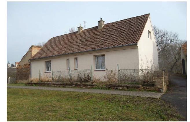 stavba není zateplena. Podlahová plocha činí 60,90 m2. Podlahová plocha vč. příslušenství činí 100,90 m2. Vnitřní omítky jsou vápenocementové. Jsou zde instalována plastová okna s dvojsklem. Orientace obytných prostor je na jih, východ, západ. Koupelna disponuje sprchovým koutem a WC je vybaveno klasickou toaletou. Jsou zde použity tyto dveře: dýhované plné, chybí, zárubně dveří jsou ocelové a vchodové dveře jsou dřevěné. Kuchyň je bez vybavení. V objektu není žádná osvětlovací technika. V obytných místnostech je podlaha řešena: cementový potěr, lino, v kuchyni je na podlaze cementový potěr, koupelna má na podlaze keramickou dlažbu a v chodbě je keramická dlažba. Do domu je zavedena elektřina o napětí 230V a v současnosti je odpojen od rozvodné sítě elektrického proudu. Zdrojem vody nebyl nalezen, ale pravděpodobně byla využíváno připojení ke studni, která se nachází na okraji pozemku. Odpady též nebyly nalezeny, ale pravděpodobně jsou svedeny do jímky. Na hranici pozemku je vyvedena přípojka zemního plynu. Dům není vytápěn (chybí zdroj) a topná tělesa jsou odmontována. Objekt nedisponuje zdrojem teplé vody. Stěny objektu jsou poškozené, střecha je bez vady, okna vykazují známky poškození, podlahy jsou bez vad, objekt má vybavení v dezolátním stavu a rozvody má objekt v dezolátním stavu. Rodinný dům je vhodný k rekonstrukci. Poškození je pravděpodobně následkem povodně v roce 2012. Je zde vysoké nebezpečí výskytu povodně (území tzv. 5leté vody). Přilehlý pozemek je bez porostů a jako oplocení pozemku byl dřevěný plot s podezdívkou, který je však v dezolátním stavu. Samotný pozemek je rovinatý. K objektu lze přijet bez problému po zpevněné obecní cestě. Parkovací možnosti jsou dobré - přímo u objektu. Součástí jsou tyto venkovní stavby: kolna v dezolátním stavu.