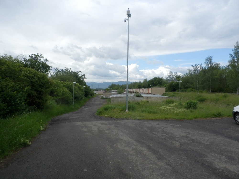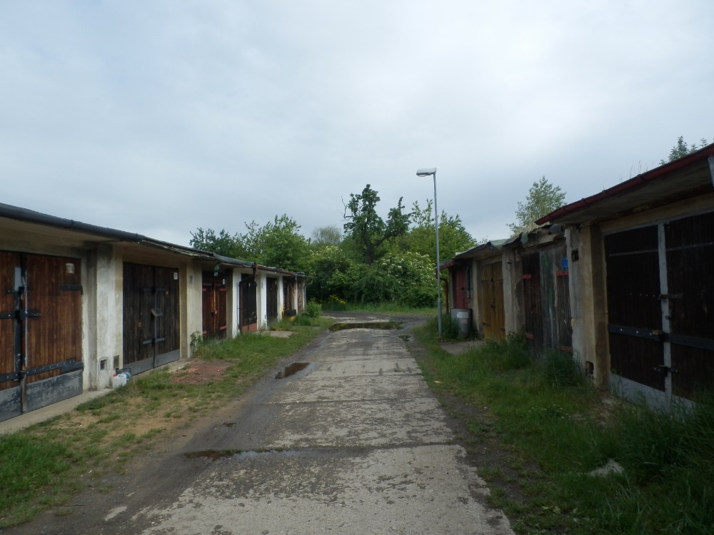 Garáž je řadová vnitřní stavba, pochází garáž z roku 1985. Garáž je přízemní stavba, vnitřní dispozice nebyla z důvodu neumožnění provedení prohlídky zjištěna, předpokládáme, že je tvořena jedním garážovým stáním pro osobní automobil. Garáž je tradiční zděné konstrukce se založením na betonových základových pasech bez izolace proti zemní vlhkosti, střecha je pultová s krytinou ze svařovaných izolačních asfaltových pásů, vnější povrchy jsou opatřeny hladkou omítkou, vrata jsou dřevěná svlaková dvoukřídlá, na čelní stěně jsou umístěny větrací otvory opatřené kovovou mřížkou. Konstrukční řešení a vybavení vnitřních prostor nebylo z důvodu neumožnění provedení prohlídky zjištěno. Garáž má vnitřní instalaci elektrického proudu, jiné vnitřní instalace provedeny nejsou. Na exteriéru stavby je patrný vliv dlouhodobě chybějící údržby a řady stavebních závad.