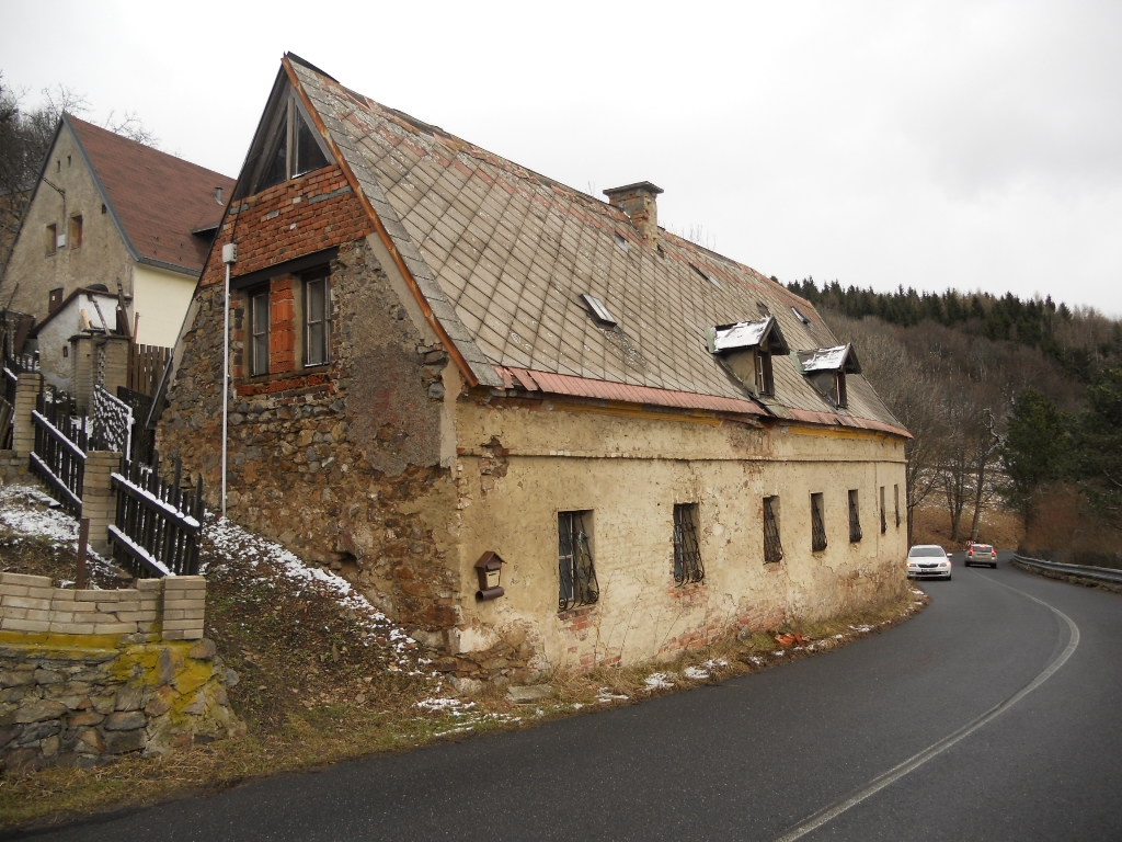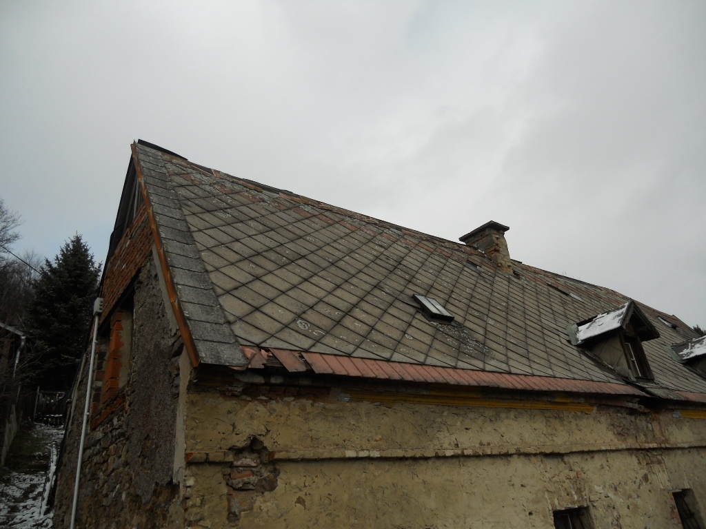 Stavebně technický stav budovy se dohaduje dle vizuálního posouzení stavby – stavba je ve špatném stavu s poškozenými konstrukčními prvky a prohlídka uvnitř objektu by patrně nebyla zcela bezpečná. Výměra užitné podlahové plochy se dohaduje dle plochy zastavěné. Rodinný dům je samostatný objekt a má jedno nadzemní podlaží. Dům pravděpodobně není podsklepený, je zde půda a v části bylo pravděpodobně dříve vybudováno obytné podkroví. Objekt byl postaven odhadem na konci 19. století. Základy má kamenné, objekt je smíšené konstrukce – převážně kámen, v části kámen/cihla, stěny mají tloušťku cca do 50 – 60 cm a stropy jsou z dřevěných trámů. Střecha je sedlová, střešní krytinu tvoří eternitové šablony, na polovině střechy budovy je novější krytina z lepenkových šablon, klempířské prvky převážně chybí, v části jsou plechové. Vnější omítky jsou vápenocementové a zateplení pláště není provedeno. Uvažovaná užitná plocha stavby činí dle plochy zastavěné do 100 m2. Stav domu je špatný, s poškozenými konstrukčními prvky dlouhodobé životnost. Stěny vykazují známky poškození, v části domu se bortí, podmáčené, fasáda zcela dožitá v části chybí. Střecha vykazuje známky poškození – jsou zde zjevná poškození trámů, do střechy zatéká – střešní krytina je zcela dožitá a místy chybí šablony. Okna jsou původní špaletová (kastlová) dřevěná, zcela dožitá, vykazují známky poškození. Vnitřní vybavení, rozvody atp. se uvažuje zcela dožité či poškozené. Stav rodinného domu je špatný – tento se uvažuje k nákladné rekonstrukci. Na pozemku se nachází pouze náletové dřeviny, pozemek bez údržby, zanedbaný stav a pozemek není oplocen. Samotný pozemek je svažitý. Přístup k objektu je bezproblémový po zpevněné obecní cestě. Jsou zde nepříznivé parkovací možnosti.