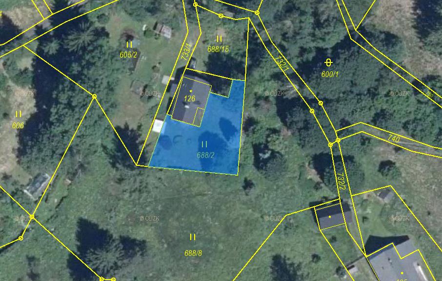 Pozemek je zahrada, rozloha pozemku činí 390 m2. Dle územního plánu je pozemek regulován jako - plochy smíšené obytné. Pozemek je součástí funkčního celku u objektu č.e. 282 v k.ú. Kyjov u Krásné Lípy. Na pozemku jsou trvalé porosty v podobě okrasných dřevin a není oplocený. Samotný pozemek je mírně svažitý. Přístup k pozemku je bezproblémový po nezpevněné obecní cestě.