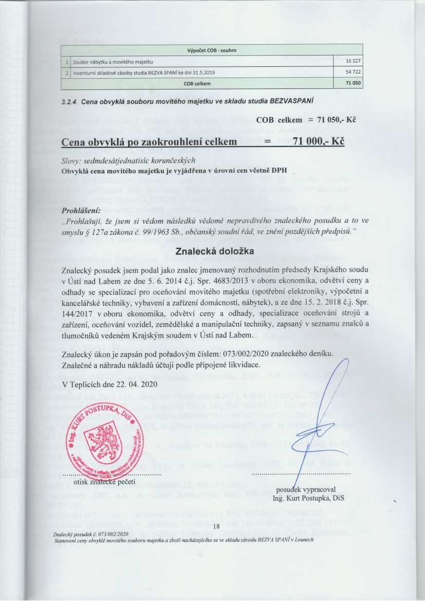 Stavba situovaná v areálu nemocnice Louny, jedná se o jednopodlažní stavbu na vyvýšené podezdívce s rovnou střechou. Založení na železobetonové podezdívce s betonovými základovými pasy, svislé konstrukce zděné, podlahy betonové, střecha železobetonová v místnostech OWA podhledy, střešní krytina ze svařovaných asfaltových pásů, klempířské prvky pozinkované. Výplně otvorů – okna plastová, dveře hladké a náplňové, vchodové dveře hladké. Před hlavním vstupem betonová rampa krytá stříškou kotvenou do fasády objektu, ocelové příhradové konstrukce s průhlednou krytinou a pozinkovaným žlabem a svodem. Z boku stavby dále předložené ocelové schodiště na žel. betonové desce. Vnější omítky jsou vápenocementové, stavba není zateplena. Vnitřní omítky vápenocementové, WC splachovací, koupelny pro zaměstnance vybaveny umyvadly a sprchovými kouty, v kuchyňském koutě kuch. linka. Osvětlení stropními zářivkovými svítidly a zářivkami v OWA podhledech. V části jsou instalovány PVC podlahové krytiny. V zadní části objektu jsou sekční vrata pro možnost nakládky ze skladovací haly. Objekt je stavebně napojen na jednu z budov nemocnice – jedná se dle dostupných zjištění o část stavby zbudovanou cca ve 20. - 30. letech 20. století, ke které byla následně přibližně v 60. – 70. letech 20. století provedena přístavba části objektu do tvaru „L“. Na nemovitosti proběhla kompletní rekonstrukce, a to přibližně před 15 – 20 lety, při které byly obnoveny konstrukční prvky stavby (fasáda, střecha, okna, dveře, vnitřní rozvody, vytápění, povrchy podlah, sanita, obklady apod.). Stav objektu je dobrý, stěny objektu jsou víceméně bez vad – je zde místně narušena fasáda stavby z důvodu vnikání zemní vlhkosti. Střecha se předpokládá bez vad, okna jsou bez vad, podlahy v objektu jsou bez závad, vady vybavení nejsou zřejmé a rozvody v objektu jsou bez vad. Některé prvky vnitřního vybavení přicházejí do mezního stavu, nicméně celkově lze hodnotit stavebně technický stav jako dobrý. Dosavadní využití bylo zejména ke skladování a lehké výrobě, spolu s administrativou firmy. Budoucí využití lze předpokládat obdobné, využití se nabízí zejména jako zázemí firmy s možností skladování výrobků a zboží. Součástí objektu je hala, která je i samostatně přístupná dveřmi z boku budovy o výměře 148,19 m2, centrální chodby o výměře 83,40 m2, příruční sklad o výměře 4,60 m2, kancelář o výměře 9,60 m2, kuchyňský kout o výměře 3,40 m2, sklad o výměře 1,75 m2, sklad o výměře 1,80 m2, koupelna s WC (páni - sprcha, chodba, WC) o výměře 17,70 m2, koupelna s WC (dámy – sprcha, chodba, WC) o výměře 20,30 m2, dílna o výměře 32,50 m2, sklad o výměře 20,35 m2, dílna o výměře 53,25 m2, dílna o výměře 19,80 m2, sklad o výměře 9,95 m2, kuchyňský kout o výměře 6,65 m2, kanceláře o výměře 21,30 m2, úklidová komora o výměře 2,35 m2, místnost (archiv) o výměře 10,60 m2. Podlahová plocha činí 467,49 m2. Objekt je napojen na rozvod el. energie - elektřina o napětí 230V a 400V, vodovod a veřejnou kanalizaci. Zemní plyn není. Objekt je vytápěn ústředně pomocí elektrického kotle a topná tělesa představují závěsné radiátory. Nemovitost má pouze pozemek, na kterém je umístěna, o celkové výměře 561 m2. Samotný pozemek je mírně svažitý. Přístup k objektu je bezproblémový po zpevněné cestě – je zde zřízeno věcné břemeno přístupu, chůze, jízdy a stání vozidel ve prospěch nemovitosti.