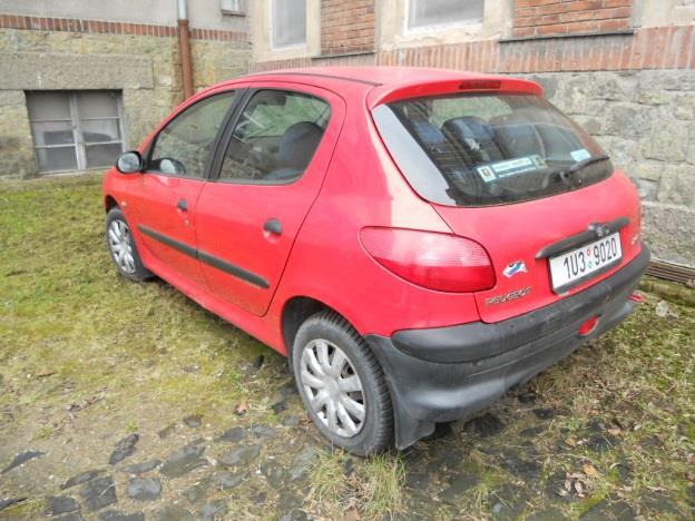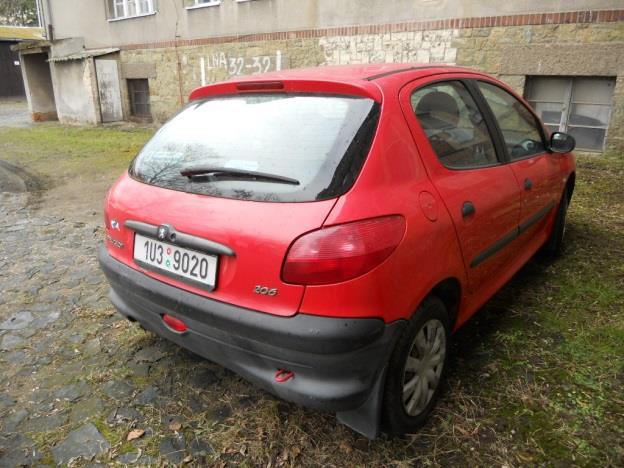 Osobní vozidlo zn. PEUGEOT 206 jedná se o pětidveřové vozidlo typu hatchback s 4-válcovým zážehovým (benzin) motorem objemu 1124 ccm o výkonu 44,1 kW (60 k). Vozidlo je zejména vybaveno jedním airbagem, rádiem, servořízením, 5-rychl. manuální převodovkou, výškově nastavitelným volantem – žádnou další speciální výbavou vozidlo vybaveno není. Vozidlo je vizuálně v zanedbaném stavu, je odstaveno delší dobu z provozu, je nepojízdné – motor nelze pro nedostatečnou kapacitu AKU nastartovat. Kontrolky nesvítí. Na vozidle jsou patrna poškození – jedná se o menší škrábance v laku z běžného provozu, poškození levého prahu vozidla, dále pak loupání vrchního čirého laku na některých dílech karoserie a celkové zmatnění laku. V motoru jsou patrny průsaky oleje kolem vrchního i spodního víka motoru, na vozidle patrná dílčí koroze, interiér znečištěn – vyskytuje se zde plíseň. STK platná do 8/2020.