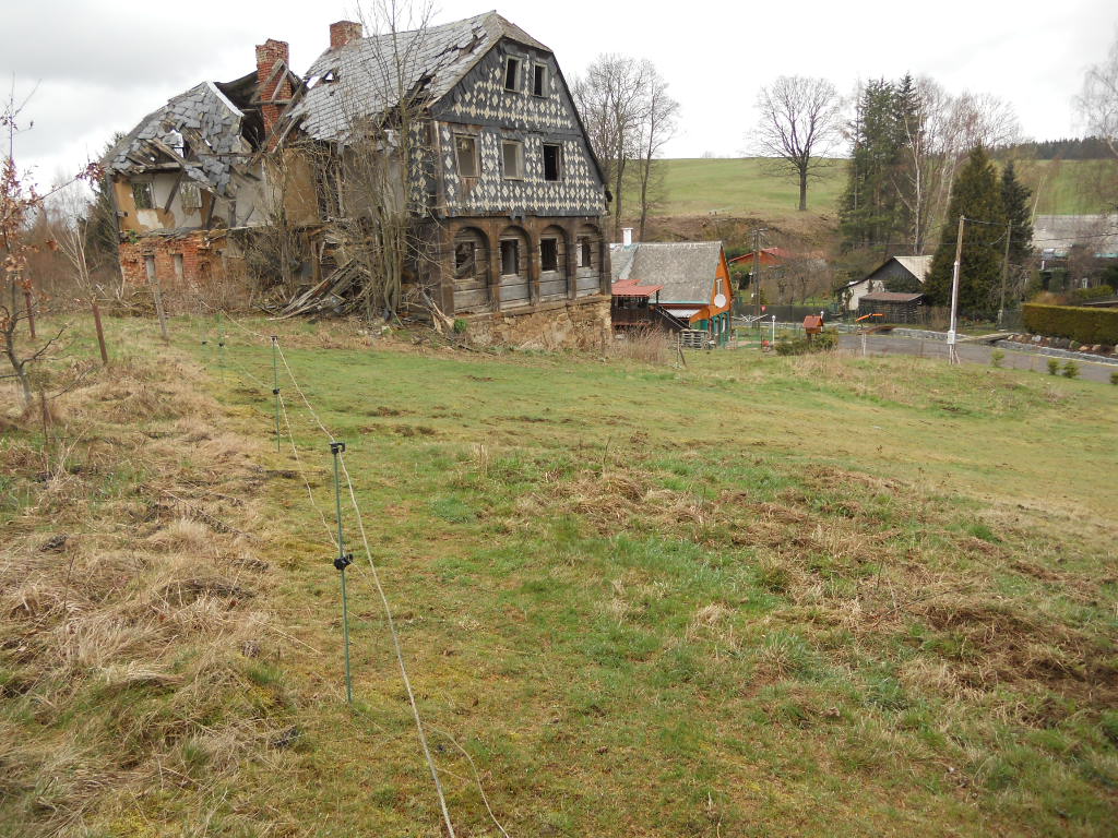 Vzhledem k velmi špatnému stavebně technickému stavu nemovitosti, byla obhlídka provedena pouze z vně objektu. Výměry se dohadují dle zastavěné plochy stavby, stavebně technický stav se dovozuje dle vizuálního posouzení stavby. Jedná se o objekt smíšené konstrukce – podstávkový dům s částečně zděnou konstrukcí. Základy jsou kamenné, stropy dřevěné trámové, tvar střechy je sedlový, střešní krytinu tvoří eternitové šablony. Dům je celkově podsklepený, má celkem dvě nadzemní podlaží v části je druhé podlaží omezené protaženým sklonem střechy. Stáří domu je odhadováno na cca 150 let, jedná se o typickou místní výstavbu konce 19. a začátku 20. století. Dům je ve velmi špatném stavebně technickém stavu, částečně zdemolovaný a pro účely ocenění je uvažován k demolici. Vnitřní vybavení domu se z těchto důvodů neuvažuje. Dům je pravděpodobně odpojen od dostupných distribučních sítí. Zastavěná plocha domu je přibližně 120 m2 - podlahová plocha činí odhadem 170 m2. Územní plán stanoví, že pozemky parc. č. st. 90 a parc. č. 2270 mají možné využití jako obytné plochy, proti tomu pozemek parc. č. 2275 je situován za hranicí zastavitelné části obce a je pozemkem zemědělským.