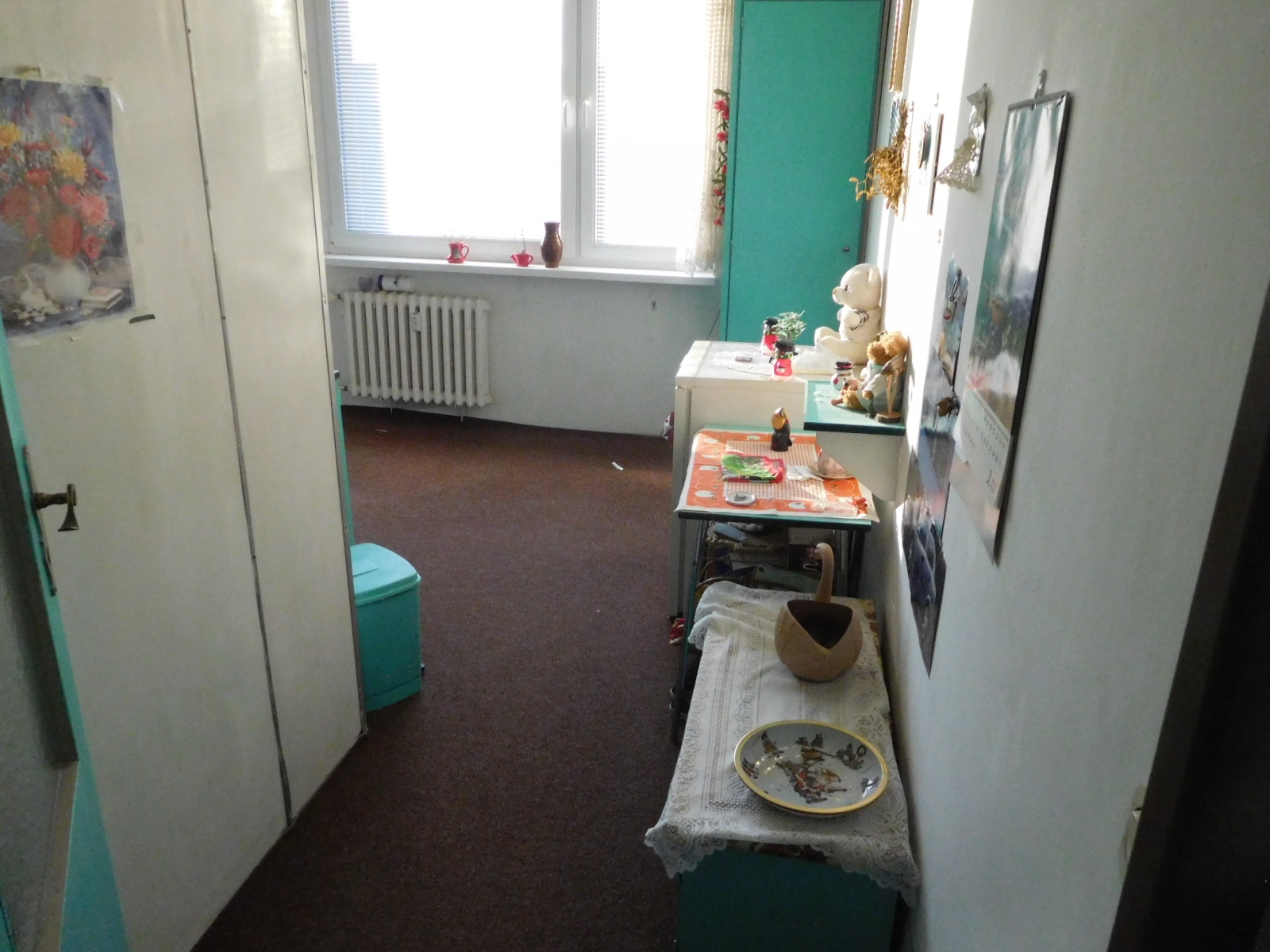 Bytová jednotka je vybudována v typovém panelovém bytovém domě. Počet nadzemních podlaží domu je 12 a má 1 podzemní podlaží. Objekt byl postaven odhadem v 70. letech 20. století. Na domě v minulosti proběhla rekonstrukce těchto konstrukčních prvků: zateplení pláště - celková, okna - celková, balkony - modernizace, vertikální rozvody - částečná. Stav bytového domu je dobrý. Vlastnictví bytové jednotky je družstevní, dle dostupných zjištění je anuita nulová. Jednotka je umístěna v 8. podlaží a dispozičně se jedná o 1+1. Podlahová plocha činí 42,60 m2. Jádro v bytě je původní umakartové. Vnitřní omítky jsou vápenocementové. V bytě jsou instalována plastová okna s dvojsklem, v celé jednotce s žaluziemi. Obytné prostory jsou orientovány na jihozápad. V koupelně se nachází klasická nízká vana, umyvadlo a na WC je klasická toaleta. V bytové jednotce jsou náplňové prosklené dveře, v jádru umakartové plné, zárubně dveří jsou ocelové a vchodové dveře jsou dřevěné. V kuchyni se nachází kuchyňská linka bez vestavěných spotřebičů, plynový sporák. Pro osvětlení jsou použity lustry. Podlahy jsou kryté linem a koberci. Do bytu je zavedena elektřina o napětí 230V – v současné době odpojeno od distribuční sítě. Objekt je připojen na vodovodní řad, je napojen na veřejnou kanalizaci a je zde zaveden zemní plyn – v současné době odpojeno od distribuční sítě. Byt je vytápěn ústředním topením (dálkové) a topná tělesa jsou závěsné radiátory. Ohřev vody je řešen dálkově. Stav bytu je zcela původní, umakartové jádro zcela dožité. Vnitřní vybavení včetně kuchyňské linky, sanity a podlahových krytin zcela dožité. Vnitřní rozvody původní zastaralé. Byt je před rekonstrukcí. Doporučujeme seznámit se se stanovami družstva.