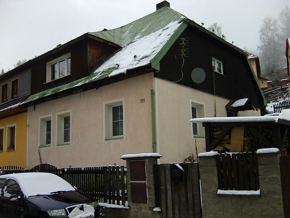 Řadový, koncový RD, částečně podsklepený. Obytné přízemí a podkroví. Střecha je sedlová s polovalbou, krytá plechovou krytinou.
