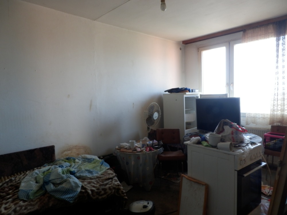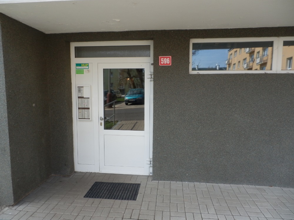 Byt je situován v bytovém domě č.p. 596 v 9. nadzemním podlaží. Byt o velikosti 1+1 sestává z předsíně, kuchyně, pokoje, koupelny a WC. Podlahová plocha bytu činí 25.10 m2. Vybavení bytu tvoří vana, umývadlo, záchod, kuchyňská linka, elektrický