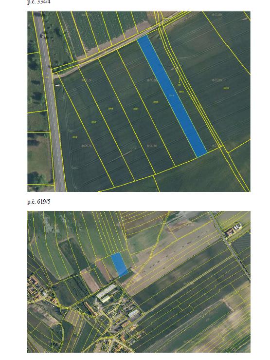 - podíl o velikosti 1/8 na pozemku parc.č. 334/4- orná půda (1614 m2) vše zapsáno v katastru nemovitostí u Katastrálního úřadu pro Středočeský kraj, Katastrální pracoviště Mělník, na listu vlastnictví č. 1275 pro katastrální území Tišice - podíl o velikosti 1/4 na pozemku parc.č. 619/5- orná půda (4244 m2) vše zapsáno v katastru nemovitostí u Katastrálního úřadu pro Středočeský kraj, Katastrální pracoviště Mělník, na listu vlastnictví č. 107 pro katastrální území Tuhaň - podíl o velikosti 1/4 na pozemku parc. č. 712/3- orná půda (779 m2) vše zapsáno v katastru nemovitostí u Katastrálního úřadu pro Středočeský kraj, Katastrální pracoviště Mělník, na listu vlastnictví č. 645 pro katastrální území Tuhaň - podíl o velikosti 1/4 na pozemku parc. č. 316/65 - orná půda (2292 m2) a na pozemku parc.č. 710/81- orná půda (778 m2) vše zapsáno v katastru nemovitostí u Katastrálního úřadu pro Středočeský kraj, Katastrální pracoviště Mělník, na listu vlastnictví č. 664 pro katastrální území Tuhaň.