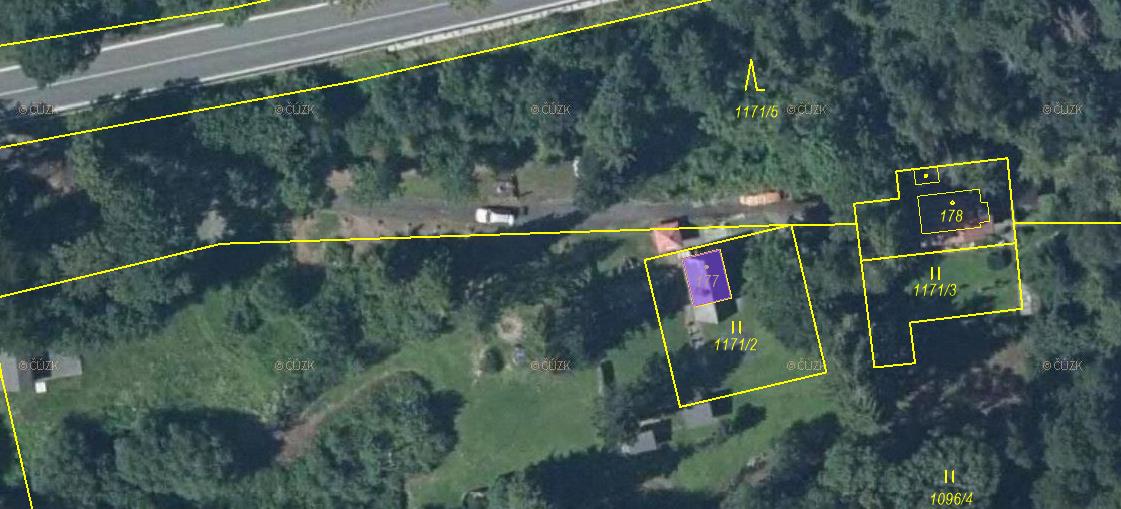 Dokumentace neodpovídá skutečnému stavu - v katastru nemovitostí je stavba č.p. 87 evidovaná jako rodinný dům. Ve skutečnosti se jedná o rekreační objekt, který neslouží k trvalému bydlení. Rekreační objekt je samostatnou stavbou a má jedno nadzemní podlaží. Stavba má částečné podsklepení, není zde půda a je zde vybudováno obytné podkroví. Osoba přítomná během prohlídky uvedla, že objekt byl postaven v roce 1980. Základy má smíšené, objekt je smíšené konstrukce, stěny v 1.PP mají tloušťku 40 cm a stěny v 1.NP a podkroví mají tloušťku 10 cm. Stropy jsou dřevěné trámové. Tvar střechy je sedlový, střešní krytina je tvořena eternitovými šablonami a klempířské prvky jsou plechové. Dispozičně je rekreační objekt 2+kk. V rekreačním objektu se nachází chodba o výměře 1,20 m2, obývací pokoj o výměře 18,24 m2, kuchyňský kout o výměře 2,68 m2, chodba o výměře 2,48 m2, WC o výměře 1,04 m2, schodiště o výměře 3,06 m2, ložnice o výměře 10,26 m2, sklep o výměře 10,50 m2. Podlahová plocha činí 38,96 m2. Podlahová plocha vč. příslušenství činí 49,46 m2. Úprava vnitřních povrchů stěn je tvořena dřevěným obitím. Jsou zde zdvojená dřevěná okna, v některých oknech jsou okenice. Obytné prostory jsou orientovány na severovýchod a jihovýchod. Koupelna se v objektu nenachází. Jedna z místností je vybavena klasickou toaletou, která je však k datu ocenění nefunkční. V objektu jsou dřevěné plné interiérové dveře, zárubně jsou ocelové a vchodové dveře jsou dřevěné. Vybavení kuchyně tvoří kuchyňská linka bez vestavěných spotřebičů a plynový sporák. Osvětlovací techniku tvoří lustry. V obytných místnostech je podlaha řešena linem a prkennou podlahou, kuchyně má na podlaze lino, v ostatních místnostech je na podlaze lino. Do objektu je zavedena elektřina o napětí 230V ze sousedního objektu č.p. 86, ale bez právního zajištění. Zdrojem vody je studna, která náleží objektu č.p. 86, napojení je bez právního zajištění. Zdroj plynu je řešen individuálně. Vytápění v objektu je lokální pomocí kamen. Stěny jsou bez vad, střecha je bez vady, okna jsou zastaralá, podlahy jsou bez vad, vybavení v objektu chybí a rozvody jsou zastaralé. Stav objektu je dobrý. Na pozemku jsou okrasné dřeviny a pozemek je bez oplocení. Samotný pozemek je částečně rovinatý a částečně svažitý. K objektu je řístup po zpevněné cestě na pozemku ve vlastnictví ČR (Lesy ČR s.p.). Možnost parkování je dobrá - přímo u objektu. K objektu náleží zpevněné plochy.