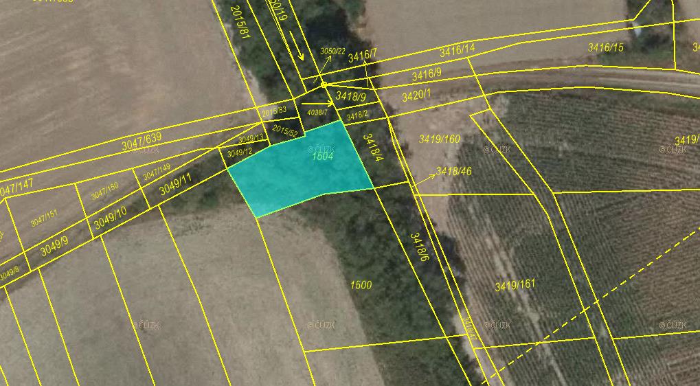 Soubor zemědělských a lesních pozemků. Pozemky parc. č. 1504 v katastrálním území Boleradice, 3416/9, 3416/15, 3417/21,