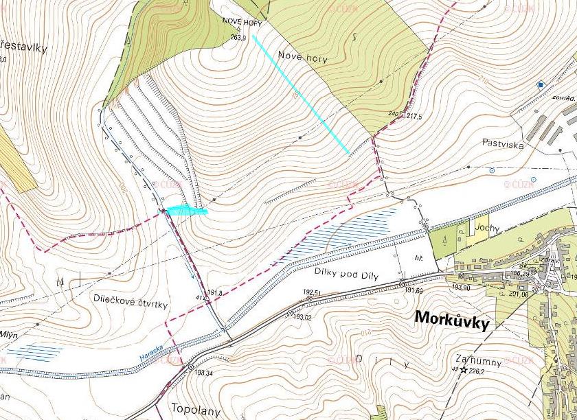 vodního toku. Vzhledem ke skutečnosti, že podobné pozemky jsou spolu se zemědělskými pozemky běžně obchodovány, jsou při výpočtu ve srovnání přiřazeny právě k zemědělským pozemkům. Celková výměra pozemků činí 15542 m2. Dle územního plánu obcí se jedná o plochy zemědělské, plochy přírodní, plochy smíšené nezastavěného území, příp. plochy vodní. Pozemky parc. č. 733/1, 733/2, 800 v katastrálním území Morkůvky jsou v katastru nemovitostí vedeny jako lesní pozemky. Pozemky plní funkci lesa. Na pozemcích se nachází převážně dub zimní, minoritně pak akát a habr, stáří 86, resp. 87 let. Celková výměra pozemků činí 8506 m2. Dle územního plánu obce se jedná o plochy lesní. Pozemek parc. č. 2011/121 v katastrálním území Morkůvky o výměře 1435 m2 je v katastru nemovitostí veden jako ostatní plocha se způsobem využití manipulační plocha. Pozemek se nachází uvnitř areálu bývalého zemědělského družstva v Morkůvkách a je využíván k manipulaci. Dle územního plánu obce se jedná o plochy zemědělské výroby.