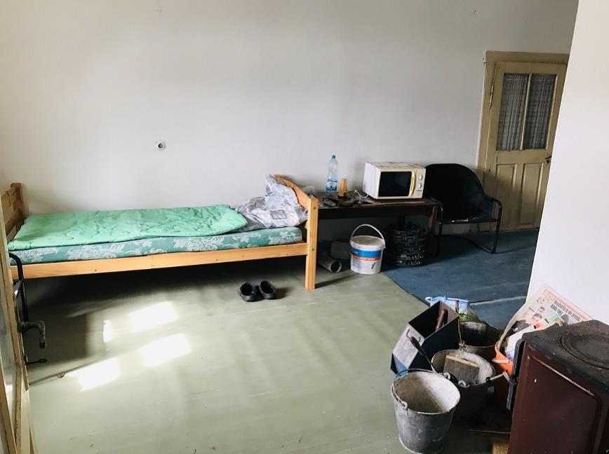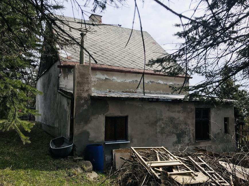 Při místním šetření byly zjištěny zadní přístavby u domu, které dle prvotních nálezů nejsou zapsány v katastru nemovitostí a obvod budovy tak neodpovídá stavu zapsanému v KN. Rodinný dům je samostatný objekt a má jedno nadzemní podlaží. Dům je částečně podsklepený, je zde půda a v části je vybudováno obytné podkroví. Objekt byl postaven odhadem ve 20. letech 20. století a je přibližně sto let starý. Základy jsou kamenné, objekt je cihlové konstrukce, stěny mají tloušťku cca do 45 cm a stropy jsou dřevěné trámové. Střecha je sedlová, střešní krytina je tvořena eternitovými šablonami a klempířské prvky jsou plechové. Vnější omítky jsou vápenocementové a zateplení pláště není provedeno. Dispozičně je dům 2+1. V domě se nachází obývací pokoj o výměře 21,90 m2, kuchyně o výměře 15,80 m2, chodba o výměře 9,15 m2, spíž o výměře 0,55 m2, pokoj o výměře 20,80 m2. Podlahová plocha činí 68,20 m2. Vnitřní omítky jsou vápenné. Okna jsou v části domu dřevěná jednoduchá, v části špaletová. Obytné prostory jsou orientovány na severovýchod, severozápad, jihovýchod, jihozápad. Koupelna v domě není, WC pouze suché v dřevníku. V domě jsou dřevěné plné interiérové dveře, zárubně dveří jsou dřevěné a vchodové dveře jsou dřevěné. Vybavení kuchyně chybí. Pro osvětlení jsou použity lustry. V domě jsou prkenné podlahy s linem, v chodbě dlažba. V současné době je dům odpojen od distribuce elektrické energie. Objekt je připojen na vodovodní řad, odpadní vody jsou svedeny do jímky, zemní plyn zde není. Vytápění v domě je lokální pomocí kamen. Objekt nedisponuje zdrojem teplé vody. Dům je v původním zanedbaném stavu, na domě byla v minulosti prováděna pouze nejnutnější údržba. Konstrukční prvky domu jsou převážně dožité či v mezním stavu. Vnitřní vybavení a součásti domu zcela dožité. Dům je určen ke kompletní rekonstrukci. Na pozemku, který náleží k objektu, jsou jehličnaté a listnaté stromy, oplocení tvoří dřevěný plot. Samotný pozemek je mírně svažitý. K objektu lze přijet bez problému po zpevněné obecní cestě. Možnost parkování je na vlastním pozemku. K objektu je stavebně napojena zděná přístavba, která je využívána jako dřevník a suché WC.