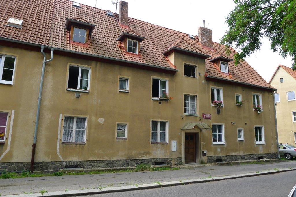 Byt je situován v bytovém domě č.p. 862 v 1. nadzemním podlaží, k bytu – jednotce náleží podíl ve výši 456/3229 na společných částech domu a pozemcích. Dispoziční řešení: byt o velikosti 1+2 sestává z předsíně (5,37 m2), kuchyně (8,69 m2), pokoje (14,02 m2), pokoje (14,54 m2), koupelny s WC (4,30 m2) a místnosti sklepa v suterénu domu (15,42 m2). Podlahová plocha bytu činí 46,92 m2, plocha sklepa 15,42 m2, celkem 62,34 m2. Stavba je založena na betonových pasech, zřejmě s izolacemi proti zemní vlhkosti, svislé nosné konstrukce stavby jsou zděné z cihel na tl. 45 cm, vodorovné nosné konstrukce jsou v suterénu betonové, v nadzemních podlažích dřevěné trámové s podbíjením a záklopem, střecha je sedlová s betonovou taškovou krytinou, klempířské prvky z titanzinkového plechu, střecha je opatřena bleskosvody, schodiště jsou betonová s teracovým povrchem stupňů, okna jsou dřevěné dvojitá, vnitřní omítky jsou štukové, vnější úpravy povrchů jsou opatřeny hladkou omítkou, sokl je ze spárovaného kamenného zdiva. Bytový dům má vnitřní rozvod el. proudu, plynu, vody, kanalizace, topení je v každém bytě řešené individuálně, včetně přípravy teplé vody. Vybavení bytu tvoří masážní sprchový kout, záchod, kuchyňská linka s pracovní deskou a dřezem, kuchyňský elektrický sporák, vodoměry, vodovodní míchací baterie, vnitřní dveře, dále vnitřní instalace elektrického proudu, vody, kanalizace, rozvod plynu v domě není do bytu zaveden, příprava teplé vody je v elektrickém zásobníkovém ohřívači, vytápění je lokální kamny na tuhá paliva umístěnými v chodbě bytu. Povrchy podlah tvoří keramická dlažba a dřevěné palubky. Budova pochází z roku 1940 z období protektorátní bytové výstavby pro dělníky blízkých průmyslových závodů, stáří domu ke dni ocenění je tedy 80 let. Na domě nejsou patrné žádné statické nebo jiné vážnější stavební závady, je přiměřeně udržován. V uplynulých letech byla obnovena střešní krytina včetně klempířských konstrukcí, obnoveny jsou pravděpodobně i vnitřní instalace v bytech. Současný stavební stav domu je dobrý. Byt je dispozičně v původním stavu, nově bylo instalováno vybavení koupelny masážním sprchovým koutem a záchodovou mísou, původní není ani vybavení kuchyně, jeví se však funkční. Celkově byt jeví známky opotřebení, obnovu vyžadují zejména okna, opotřebené jsou povrchy podlah apod. Nedostatkem ve vybavení bytu je lokální vybavení jedinými kamny na tuhá paliva v chodbě.