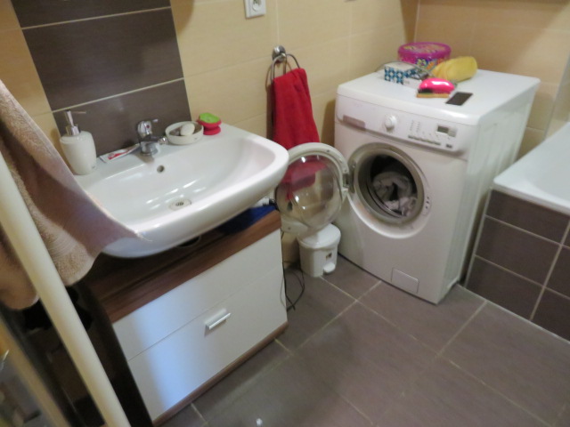 Bytová jednotka se nachází ve 2.NP, její dispozice 3 + KK. Jednotka sestává z kuchyňského koutu, 2 pokojů, obývacího pokoje, předsíně, chodby, sklepa, koupelny a WC. Jádro bytu je zděné. Dveře jsou dřevěné, koupelna s vanou a s WC. Samostatné WC. Podlahy prkenné, plovoucí a s keramickou dlažbou. Obklady jsou keramické. K bytu patří lodžie. Užitná plocha jednotky 90,84 m2. Nemovitost napojena na veřejný vodovod, kanalizaci, plynovod a elektřinu, vytápění je ústřední, ohřev teplé vody je centrální.