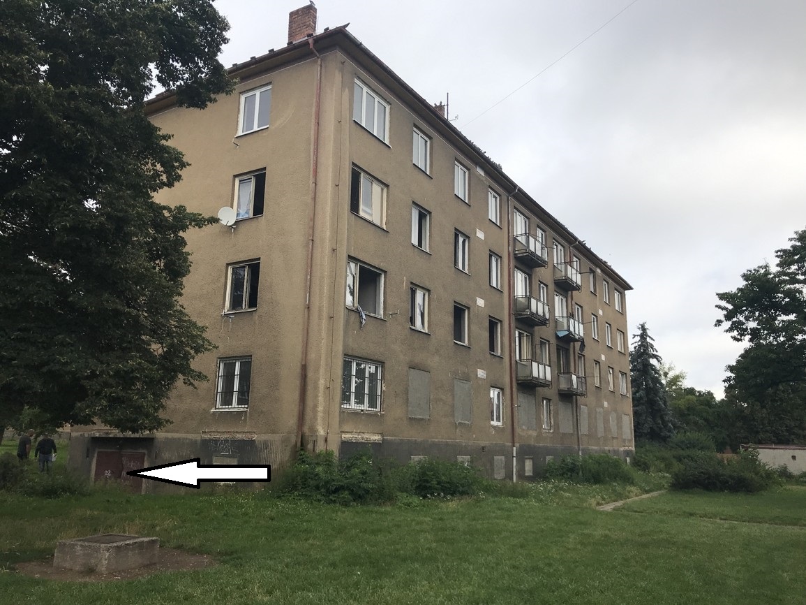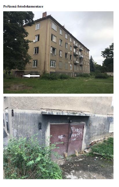 Do nemovitosti nebylo možné se dostat, jedná se o vybydlený bytový dům ve špatném stavu, který má zazděné vchody. Garážová jednotka je umístěna v typovém zděném bytovém domě. Stavba má celkem 4 nadzemní podlaží a má 1 podzemní podlaží. V objektu je půda a není zde vybudováno obytné podkroví. Odhadem byl objekt postaven v 60. letech 20. století. Dům je vybydlený, poničený, v současné době prázdný. Konstrukční prvky dožité. Bytový dům je vhodný k rekonstrukci. Garážová jednotka je v osobním vlastnictví, umístěna v podzemním podlaží bytového domu. Podlahová plocha jednotky je 52,30 m2. Vnitřní úprava stěn: nezjištěno - předpoklad: vápenocementové omítky. Otvory pro okna zazděné, vrata do garáže jsou kovová dvoukřídlá, podlahy pravděpodobně betonové. Vnitřní vybavení jednotky nebylo zjištěno - předpokládá se zcela dožitý či poničený stav. Objekt je odpojen od dodávky elektřiny. Možnost napojení na vodovod a kanalizaci. Vytápění bylo dříve řešeno pravděpodobně dálkově - neověřeno. Jednotka je před rekonstrukcí.