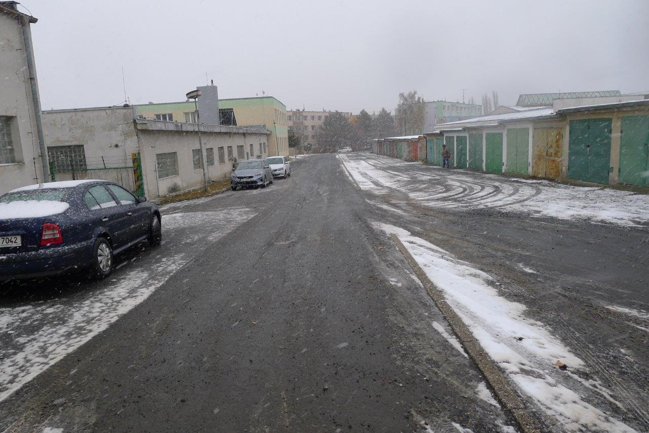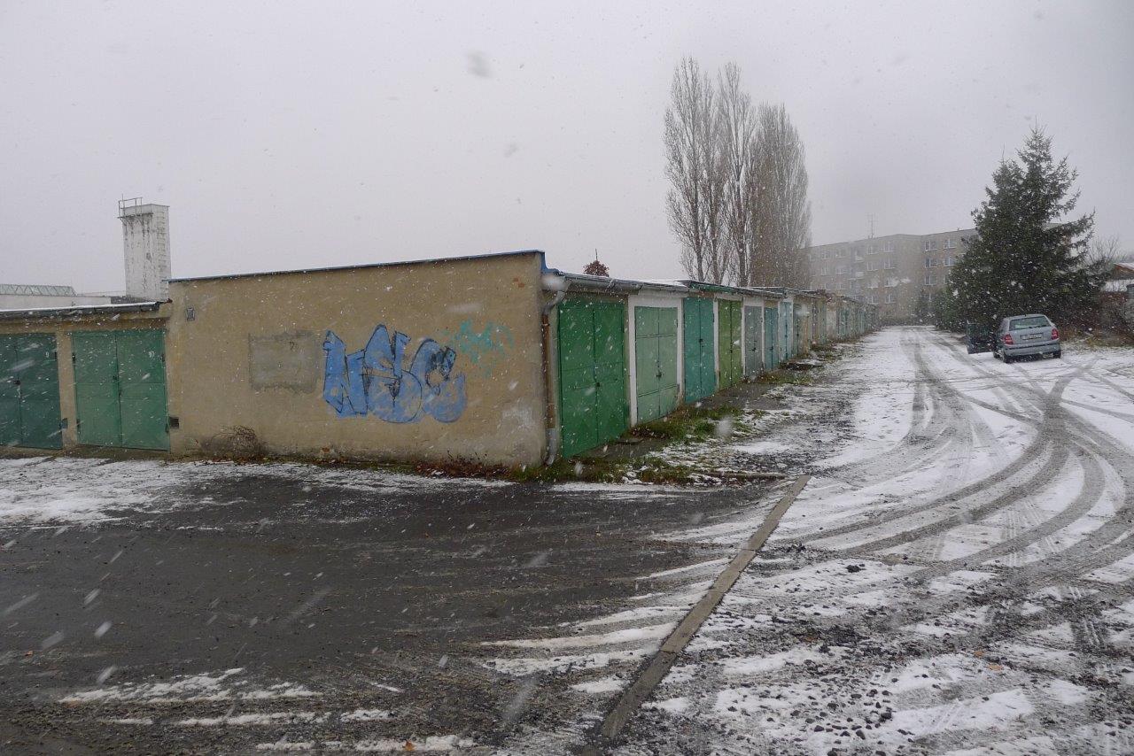 Plocha před vjezdem do garáže není zpevněná. Stáří a stavební stav: Údaj o stáří garáží se nepodařilo zjistit ani u vlastníka, podle způsobu provedení, použitých materiálů a stavebně technického stavu odhadujeme stáří stavby na přibližně 50 roků. Při vnější obhlídce bylo zjištěno narušení omítek u terénu, a zjevná koroze plechových vrat. Podle přítomného prokuristy družstva dochází k zatékání střešní krytinou, kterou je třeba obnovit a dále je třeba opravit nekvalitní zpevnění podlahy.
