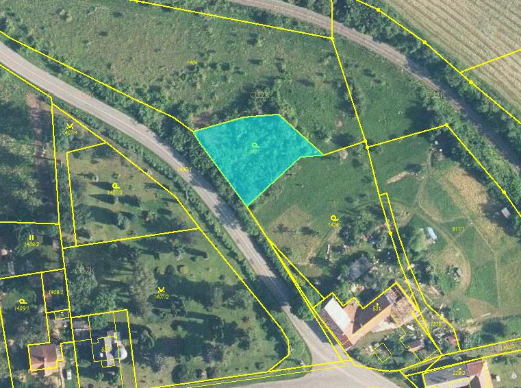 Pozemek o rozloze 855 m2 je v katastru nemovitostí veden jako zahrada. Dle územního plánu je pozemek regulován jako plochy smíšené obytné - venkovské. Pozemek se nachází v ochranném pásmu drah a v silničním pásmu. Dle územního plánu nemohou být na pozemku umisťovány stavby pro bydlení. V blízkosti pozemku nejsou inženýrské sítě (pouze elektrické vedení na pozemku na druhé straně komunikace). Pozemek je mírně svažitý, bez oplocení a porostlý náletovými dřevinami. K pozemku lze přijet bez problému po zpevněné obecní cestě. Z důvodu hustého porostu náletovými dřevinami je pozemek obtížně přístupný.