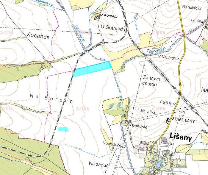 Pozemky zapsané na LV 322 pro k.ú. Lišany u Rakovníka. Jedná se převážně o zemědělské pozemky situované mimo zastavitelnou část obce, obhospodařované jako orná půda. Pozemek parc. č. 1151/13 je součástí jiného půdního bloku než ostatní pozemky zapsané na listu vlastnictví – ostatní pozemky tvoří funkční celek a jako tento celek jsou součástí pole, se zanedbatelným přesahem do remízu, resp. do koryta umělého vodního toku. Rozhodné pro ocenění pozemků je jejich převažující stávající či budoucí využití – pozemky se pro účely ocenění zařazují jako zemědělské – orná půda. Územní plán reguluje plochu pozemků jako „Z – zemědělské plochy – orná půda“. Věcné břemeno vedení trasy ropovodu MERO IKL DN 700. Věcné břemeno (podle listiny) zřídit a provozovat podzemní telekomunikační vedení.