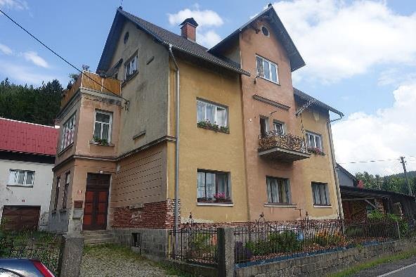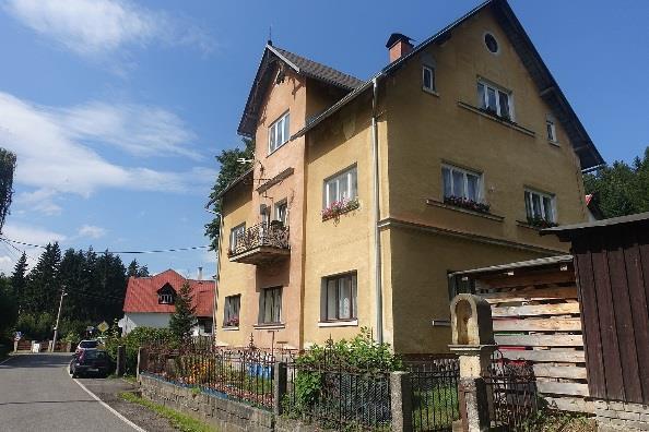 Byt je umístěn v netypovém zděném bytovém domě, původně továrnické vile z r. 1910. Bytový dům je situovaný v širším centru obce a charakter okolí odpovídá zástavbě rodinnými domy se zahradami. Stavba má celkem 2 nadzemní podlaží a obytné podkroví a má 1 podzemní podlaží. Základy má kamenné, objekt je cihlové konstrukce, stropy jsou tvořeny dřevěnými trámy. Střecha je sedlová, střešní krytina je tvořena eternitovými šablonami a pro klempířské prvky byl použit pozinkovaný plech. Vnější omítky jsou vápenocementové. Dům není zateplen. Společnými prostory domu jsou: vstupní prostor, schodiště. Na základě sdělení osoby přítomné během prohlídky byl objekt postaven v roce 1910, v r. 1956 byl částečně rekonstruován, dispozičně upravován na bytový dům. Stěny i další stavební prvky domu jsou zastaralé a vykazují známky poškození. Stěny bytu jsou vlhké, omítka místy opadaná, nebo odstraněná z důvodu vlhkosti. Bytový dům je vhodný k rekonstrukci. Bytová jednotka je v osobním vlastnictví. Je umístěna v 1. podlaží a její dispozice je 3+1. Podlahová plocha činí 80.42 m2. Jádro v bytě bylo vyzděné. Vnitřní omítky jsou štukové. V bytové jednotce jsou instalována špaletová okna. Obytné prostory jsou orientovány na jihovýchod, jihozápad. V koupelně vybudované před 10 lety se nachází sprchový kout, umyvadlo a WC je vybaveno klasickou toaletou. Oceňovaná bytová jednotka disponuje interiérovými plnými dřevěnými dveřmi, mají ocelové zárubně a vchodové dveře jsou dřevěné. Je instalována kuchyňská linka bez vestavěných spotřebičů s el. sporákem. Osvětlovací techniku tvoří lustry. V obytných místnostech je lino, v kuchyni je lino, v koupelně jsou podlahy tvořeny keramickou dlažbou a v chodbě je keramická dlažba. V ostatních místnostech je lino nebo koberce na prkenné nebo bet. Podlaze. V bytové jednotce se nenachází další vybavení. Do bytové jednotky je zavedena elektřina o napětí 230V a 400V a je napojen na rozvodnou síť elektrického proudu. Voda pro celý dům je brána ze studny, odpadní vody jsou svedeny do jímky a zemní plyn zde není zaveden. Řešení vytápění v bytě: elektrické přímotopy, kamna. V bytě je pro ohřev vody využíván bojler. Byt je před rekonstrukcí. Na pozemku se nenacházejí trvalé porosty, je do ulice oplocen dřevěným plotem. Samotný pozemek je mírně svažitý. Přístup k objektu je bezproblémový po zpevněné obecní cestě.