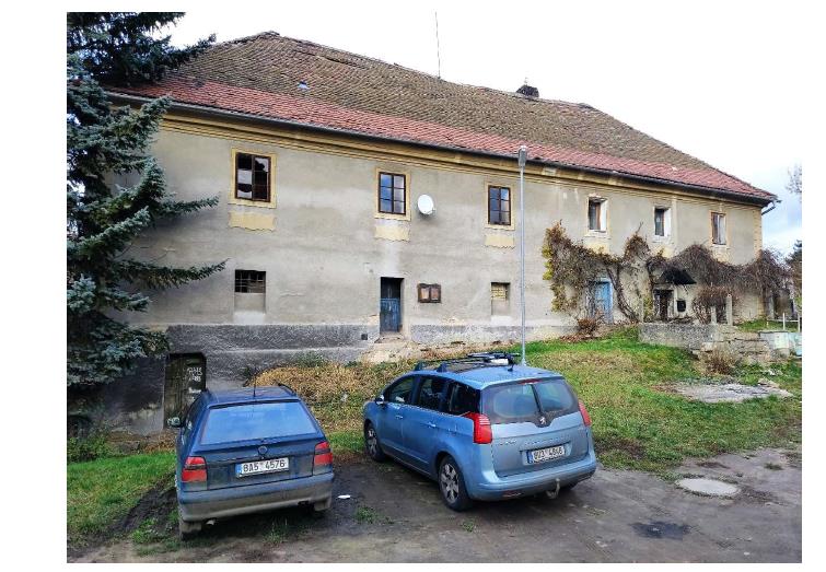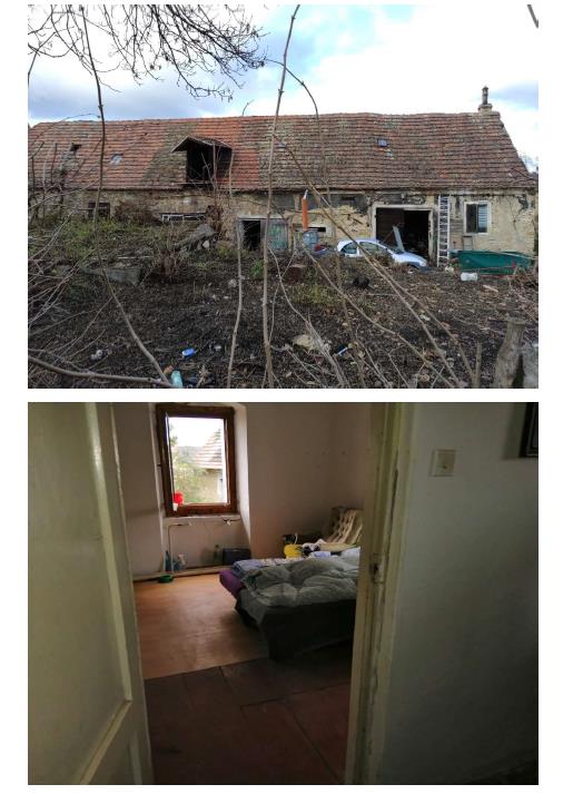 Objekt je původně zemědělskou usedlostí s mlýnem. Samotný objekt má celkem 2 nadzemní podlaží a 1 částečně podzemní. V objektu je půda a nemá vybudované obytné podkroví. Odhadem byl objekt postaven v roce 1850. Základy má kamenné či smíšené, konstrukce objektu je kamenná (opuka), tloušťka stěn je od 50 cm a stropy jsou cihelné klenby, ve 2. NP trámové. Střecha je sedlová, z části valbová, střešní krytinu tvoří bobrovka a klempířské prvky jsou plechové pozinkované. Vnější omítky jsou vápenocementové a stavba není zateplena. Dispozičně je dům atypický. V obytné části domu se nachází zádveří o výměře 17,80 m2, kuchyně o výměře 10,60 m2, pokoj o výměře 15,20 m2, koupelna o výměře 8,00 m2, koupelna s WC o výměře 7,30 m2, chodba o výměře 4,20 m2, schodiště o výměře 13,40 m2, pokoj o výměře 22,50 m2, pokoj o výměře 10,30 m2, pokoj o výměře 26,60 m2, chodba o výměře 11,40 m2, pokoj o výměře 11,00 m2. Prostory bývalého mlýnu jsou o výměře 370,00 m2. Podlahová plocha činí 528,30 m2 Vnitřní omítky jsou vápenocementové. Okna jsou místy dřevěná zdvojená, převážně špaletová. Orientace obytných prostor je na sever, jih. V koupelně se nachází klasická vana, umyvadlo a WC je vybaveno klasickou toaletou. Vnitřní dveře jsou dýhované plné, dýhované prosklené, mají ocelové zárubně a vchodové dveře jsou dřevěné. Kuchyně je vybavena kuchyňskou linkou bez vestavěných spotřebičů. Osvětlovací techniku tvoří lustry, chybí. V obytných místnostech je podlaha řešena: lino, prkenná podlaha, kuchyně má na podlaze keramickou dlažbu, koupelna má na podlaze keramickou dlažbu a v chodbě je podlaha řešena: keramická dlažba, cementový potěr. Do domu je zavedena elektřina o napětí 230V a 400V a je napojen na rozvodnou síť elektrického proudu. Zdrojem vody je vodovod, je napojen na jímku a zemní plyn není zaveden. Dům je vytápěn lokálně pomocí kamen a topná tělesa již nejsou součástí objektu. Ohřev vody je řešen bojlerem. Objekt má stěny provedené z kamene, střecha vykazuje známky poškození, okna jsou zastaralá, podlahy v objektu jsou podstandardního provedení, vybavení je podstandardního provedení a rozvody jsou zastaralé. Průběžná údržba je zanedbaná. Stav rodinného domu je spíše špatný, vhodný k rozsáhlé rekonstrukci. Na pozemku, který leží za hospodářskými objekty, jsou ovocné dřeviny (sad) a pozemek je oplocen pletivem do ocelových sloupků. Sklon pozemku je rovinatý. K objektu je bezproblémový přístup po zpevněné obecní cestě. Parkovací možnosti jsou na vlastním pozemku. Součástí jsou tyto venkovní stavby: zděné hospodářské budovy (chlévy, stodoly) o zastavěné ploše 662 m2. Objekty mají sedlovou střechu či polo valbovou střechu s krytinou z bobrovek. Objekty jsou ve špatném stavu.