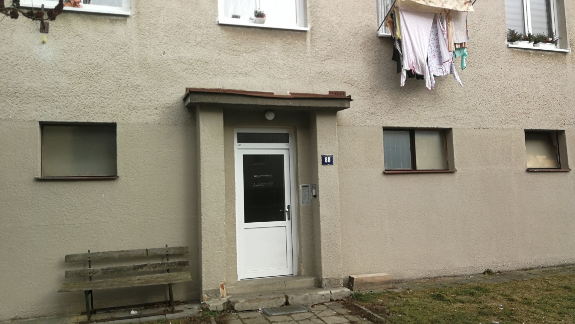 Byt je umístěn v typovém cihlovém bytovém domě. Stavba má celkem 3 nadzemní podlaží a nemá podzemní podlaží. V objektu není přístupná půda a není zde vybudováno obytné podkroví. Základy má betonové bez izolace, konstrukce objektu je cihlová a stropy jsou keramickobetonové. Má sedlovou střechu, střešní krytinu tvoří plech s nátěrem a klempířské prvky jsou plechové. Vnější omítky jsou břízolitové a zateplení pláště není provedeno. Společnými prostory domu jsou: vstupní prostor, schodiště, kolárna, kočárkárna. Rok výstavby: 1970. Objekt má stěny provedené podstandardně, střecha je bez zjevné vady (pravděpodobně po rekonstrukci), okna v objektu mají podstandardní provedení (u části bytů vyměněna), podlahy jsou podstandardní, vybavení je zastaralé a rozvody jsou zastaralé. Stav bytového domu je však celkově dobrý a odpovídá svému stáří.