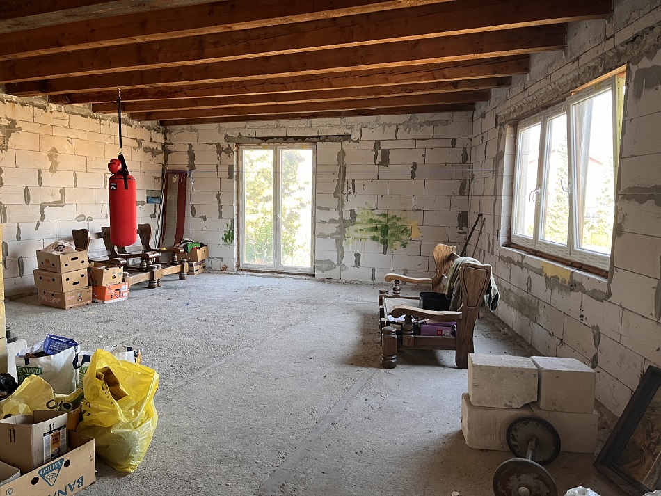 Rozestavěná bytová jednotka: Součástí bytového domu je přístavba z roku 2006, ve které se nachází bytová jednotka, která je ve výstavbě a není dokončena: není zapsaná v KN, má samostatný vchod – původní vchodové dveře dřevěné, prosklené, které nejsou bezpečnostní, zčásti se nachází v 1.NP (zádveří + schodišťový prostor) odkud vede schodiště do 2.NP, v 2.NP se nachází schodišťový prostor, poté se vchází do místnosti s prostorem pro kuchyňský kout, základy pravděpodobně betonové s izolací, střecha rovná s mírným sklonem, střešní krytina je tvořena živičnou lepenkou, konstrukce je z ytongu, stropy jsou dřevěné trámové, plastová okna bez žaluzií, podlahy betonové, vnitřní omítky - ne, vybavení – ne, rozvody – nejsou provedeny, 1.NP - 7,35 m2, 2.NP - 76,20 m2 = podlahová plocha celkem 83,55 m2. Bytový dům je oplocen. K objektu lze přijet bez problému po zpevněné obecní cestě. Objekt je postaven v jižní části obce a charakter okolí odpovídá zástavbě bytovými a rodinnými domy se zahradami. Dostupnost obchodů je úplná - vybavenost obchodními středisky i specializovanými obchody. V místě je kompletní soustava základních, středních i vysokých škol včetně specializovaných zařízení a v místě je kompletní vybavenost z hlediska kulturních zařízení. V okolí domu je kompletní vybavenost z hlediska sportovního vyžití, v okolí jsou nejdůležitější úřady, ostatní úřady jsou v dojezdové vzdálenosti a v místě se nachází pobočka České pošty. Dům je postaven v klidné lokalitě bez zdraví ohrožujících vlivů a v docházkové vzdálenosti od domu je zeleň v podobě luk a lesů. Objekt se nachází v lokalitě se zanedbatelným nebezpečím výskytu záplav. V místě je zastávka MHD a zastávka dálkových spojů je v docházkové vzdálenosti, možnost parkování je na vlastním pozemku. Jsou zde vyhrocené vztahy s vlastníky z bytové jednotky č. 446/2 a dle znalostí zpracovatele v okolí domu není zvýšena kriminalita - zločiny jsou zde výjimečné.