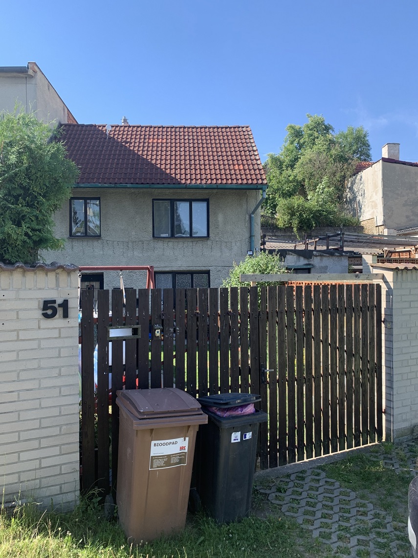 Rodinný dům byl postaven jako koncový řadový objekt a má celkem 2 nadzemní podlaží. Dům nemá podsklepení, je zde půda a obytné podkroví není vybudované. Objekt byl postaven odhadem v roce 1950. Rekonstrukce konstrukčních prvků byly stanoveny odhadem, znalci nebyly potřebné údaje spolumajitelem nemovitost sděleny. V roce 1982: přístavba-celková, dále v roce 1990 proběhla rekonstrukce těchto konstrukčních prvků: střešní krytina - celková, dále v roce 2002: zdroj vytápění - celková, podlahy - celková, kuchyně - celková, koupelna - celková, vnitřní povrchy - celková, topná tělesa – celková. Základy má pravděpodobně smíšené, konstrukce objektu je smíšená, stěny mají tloušťku 45 cm a stropy jsou z dřevěných trámů. Má sedlovou střechu, střešní krytina je tvořena betonovou taškou a klempířské prvky jsou plechové. Vnější omítky jsou tvořeny břízolitem a stavba není zateplena. Dispozičně je dům 2+1. V domě se nachází kuchyně o výměře 9,70 m2, obývací pokoj o výměře 14,48 m2, koupelna s WC o výměře 6,03 m2, chodba o výměře 5,81 m2, pracovna o výměře 6,90 m2, dětský pokoj o výměře 15,75 m2, chodba o výměře 14,86 m2, terasa o výměře 28,41 m2, půda o výměře 26,61 m2. Podlahová plocha činí 73,52 m2. Podlahová plocha vč. příslušenství činí 128,54 m2. Vnitřní omítky jsou štukové. Jsou zde špaletová okna. Obytné prostory jsou orientovány na sever, jih. V koupelně se nachází rohová vana, umyvadlo a klasická toaleta. V domě jsou dýhované dveře, zárubně dveří jsou ocelové a vchodové dveře jsou dřevěné. V kuchyni se nachází kuchyňská linka bez vestavěných spotřebičů, plynový sporák. Osvětlovací techniku tvoří lustry. V obytných místnostech je podlaha řešena: laminátová plovoucí podlaha, koberce, v kuchyni je na podlaze lino, v koupelně jsou podlahy tvořeny keramickou dlažbou a v chodbě je podlaha řešena: keramická dlažba, lino. V ostatních místnostech je prkenná podlaha. V rodinném domě se nenachází další vybavení. Do objektu je zavedena elektřina o napětí 230V a 400V. Do objektu je zaveden vodovod, je napojen na veřejnou kanalizaci a rozvod zemního plynu je připojen. V domě je topení řešeno ústředně plynovým kotlem a topná tělesa představují závěsné radiátory. Ohřev vody je řešen plynovým kombinovaným kotlem. Stěny objektu jsou bez vad, střecha je bez vady, okna jsou zastaralá, podlahy jsou bez vad, vybavení objektu je bez vad a rozvody v domě jsou zastaralé. Rodinný dům je před