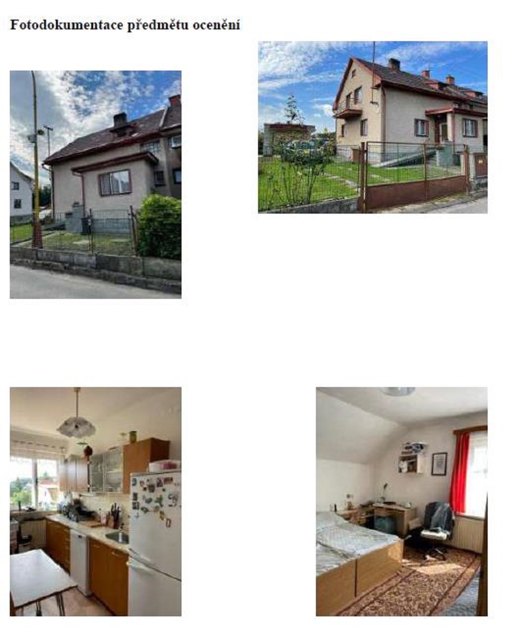 Rodinný dům je část dvojdomku. Stavba má 2 nadzemní podlaží. Dům je podsklepený celkově. V objektu se v části nachází půda a má vybudované podkroví. Základy má betonové neizolované a objekt je cihlové konstrukce. Tloušťka obvodové konstrukce činí 45 cm. Stropy nad sklepem jsou železobetonové a stropy v 1. a 2. NP jsou dřevěné, střecha je sedlová, krytinu tvoří eternitové šablony a klempířské prvky jsou plechové. Vnější omítky jsou břízolitové a zateplení pláště není provedeno. Objekt byl postaven na základě sdělení přítomné osoby v roce 1971. Stav objektu vykazuje známky zanedbané běžné údržby, jeho stav lze charakterizovat jako dobrý. Dispozice rodinného domu je 4+2. Podlahová plocha je 136,16 m2. Podlahová plocha vč. Příslušenství 229,78 m2. Vnitřní omítky jsou vápenocementové. Okna jsou kastlová. Příslušenství oken chybí. Obytné místnosti jsou orientované na severovýchod, jihozápad. Kuchyňské vybavení tvoří elektrický sporák, kuchyňské linky bez vestavěných spotřebičů. V koupelně se nachází klasická vana a umyvadlo, v druhé koupelně se nachází sprchový kout, umyvadlo a na toaletě se nachází klasická toaleta. Interiérové dveře jsou dřevěné plné, dřevěné prosklené, zárubně jsou ocelové a vchodové dveře jsou dřevěné. Osvětlovací techniku tvoří lustry. Podlahové krytiny v jednotlivých typech místností: keramická dlažba, vlýsky. Další vybavení rodinného domu tvoří krbové kamna. Do domu je zavedena elektřina o napětí 230 V a je dodávána z rozvodné sítě. Voda je přivedena z obecního vodovodu. Objekt je napojen na veřejnou kanalizaci. Zemní plyn je zaveden. Vytápění zajišťuje plynový kotel, topná tělesa tvoří závěsné radiátory, ohřev vody zajišťuje bojler. Celková výměra pozemků ve funkčním celku dle LV č. 115 - st. 707, st. 1459 a 473/14 parc. č. činí 550 m2. Sklon pozemků je rovinatý. Pozemek je oplocený pletivem do ocelových sloupků. Na pozemku se dále nacházejí vedlejší stavby – garáž a dřevěný altán. Přístup je bezproblémový po zpevněné obecní cestě. Rodinný dům je postaven v severní části obce a charakter okolí odpovídá rezidenční zástavbě rodinnými domy se zahradami. Nemovitosti se nachází v ochranném pásmu vodní zdroje 2. stupně.