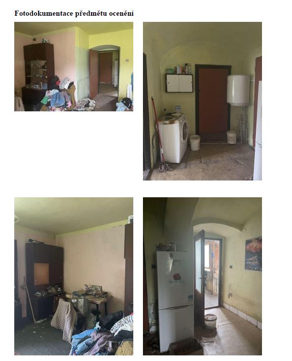 Dokumentace neodpovídá skutečnému stavu - zastavěná plocha rodinného domu s příslušenstvím neodpovídá zákresu zastavěné plochy v KN. Rodinný dům je samostatný objekt. Stavba má 1 nadzemní podlaží. Dům je částečně podsklepený s přístupem z venku. V objektu je půda a není zde vybudované obytné podkroví. Objekt byl postaven odhadem mezi lety 1900 - 1930. Stav objektu lze charakterizovat jako před celkovou rekonstrukcí. Dispozice rodinného domu je 3+kk. Podlahová plocha 70 m2. Vnitřní omítky jsou vápenné. Okna jsou kastlová. Příslušenství oken chybí. Kuchyňské vybavení chybí. Nachází se zde pouze plynový sporák napojený na plynovou bombu. V koupelně se nachází starší klasická vana a na toaletě se nachází klasická toaleta a umyvadlo. Interiérové dveře jsou dýhované plné či dřevěné, zárubně jsou ocelové a vchodové dveře jsou dřevěné. Osvětlovací techniku tvoří lustry. Další vybavení rodinného domu chybí. Do domu je zavedena elektřina o napětí 230 V a je dodávána z rozvodné sítě. Voda je odebírána ze studny. Svod splašků je řešen do jímky. Zemní plyn není zaveden. Vytápění je řešeno lokálně kamny, ohřev vody zajišťuje bojler. Celková výměra pozemku ve funkčním celku s rodinným domem činí 1460 m2. Sklon pozemku je mírně svažitý až svažitý. Pozemek je oplocený pouze z části dřevěným plotem. Mimo oplocení se na pozemku nachází náletový neudržovaný porost, hospodářsky nevýznamný. Na rodinný dům navazuje hospodářské stavení, které spolu s rodinným domem tvoří půdorys do tvaru písmene L. Jedná se o 2 podlažní objekt smíšené konstrukce, s kamenným základem. Objekt má pultovou střechu, krytinu tvoří plechové šablony. Objekt není udržovaný a je ve špatném technickém stavu. Součástí ocenění je dále zděná kolna. Jedná se o objekt smíšené konstrukce, s kamenným základem, s mělkou sedlovou střechou. Krytinu tvoří plechové šablony. Součástí ocenění jsou dále 2 pozemky parc. č. 31 a 774/1, které se nacházejí v těsné blízkosti rodinného domu a jsou územním plánem určeny pro bydlení. Lze je tedy považovat za pozemky stavební. Pozemek parc. č. 31 je svažitý s travním porostem, o výměře 903 m2. Pozemek parc. č. 774/1 je mírně svažitý až svažitý s náletovým neudržovaným porostem, o výměře 1 137 m2. U pozemků nejsou vybudovány žádné přípojky, v dosahu se nachází vedení elektrické energie a vodovod. Předmětem ocenění je dále zemědělský pozemek parc. č. 2586 o výměře 2 337 m2. Pozemek je mírně svažitý až svažitý, neudržovaný, porostlý náletovými dřevinami, hospodářsky nevýznamnými. Pozemek je obtížně přístupný, po revitalizaci ale hospodářsky využitelný. K rodinnému domu vede obecní nezpevněná cesta, která je ale neudržovaná a zarostlá. Přístup je tak možný pouze pěšky po cestě přes pozemek parc. č. 31.