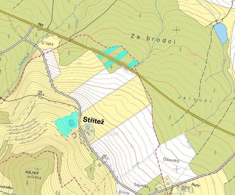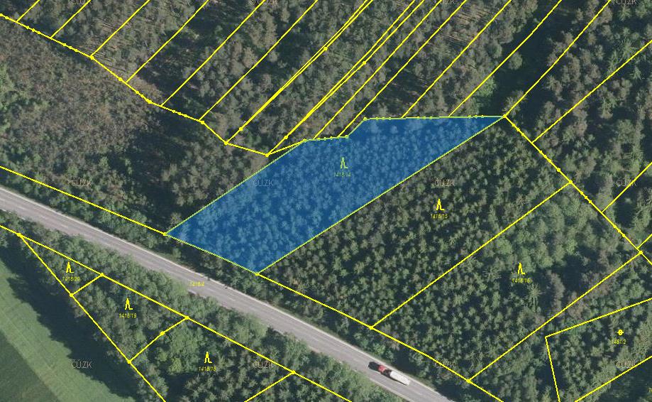 Pozemky určené k plnění funkcí lesa. Celková rozloha 12 758 m2.