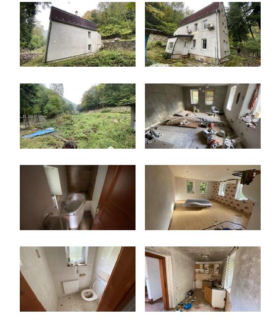 Rodinný dům je samostatný objekt. Stavba má 2 nadzemní podlaží. Dům není podsklepený. V objektu je půda a má vybudované podkroví. Základy má kamenné a objekt je cihlové konstrukce. Střecha je mansardová, krytinu tvoří živičná lepenka a klempířské prvky jsou pozinkované. Vnější omítky jsou fasádní štukové a plášť je zateplen polystyrenem. Objekt byl postaven odhadem na začátku 20. století, v nedávné minulosti pravděpodobně přistavěno zádveří, které však není zakresleno v katastrální mapě. Stavba byla pravděpodobně provedena bez povolení nebo nebyla dodatečně legalizována. Vnitřní omítky jsou vápenocementové. Okna jsou plastová s dvojsklem. Obytné místnosti jsou orientované na severovýchod, severozápad, jihovýchod, jihozápad. V koupelně se nachází klasická vana, umyvadlo a na toaletě se nachází závěsná toaleta. Interiérové dveře většinou chybí, zárubně jsou obložkové a vchodové dveře jsou plastové. Vnitřní vybavení většinou chybí, je poničené nebo zcela dožité - v domě byla započata vnitřní rekonstrukce. Dispozice rodinného domu: dvougenerační. Podlahová plocha 126,65 m2. Další vybavení rodinného domu: Klimatizační jednotky vnitřní a vnější - funkčnost neověřena. Napojení na inženýrské sítě, vytápění a ohřev TUV: Dům je možno napojit na elektřinu - v současné době odpojeno od distribuční sítě. Voda je přivedena z obecního vodovodu. Svod splašků je řešen do jímky. Zemní plyn není zaveden. Stavba byla vytápěna přímotopy - v současné době buď chybí, nebo odpojené, ohřev vody zajišťuje bojler. Stavebně technický stav a vady rodinného domu: Na domě proběhla rekonstrukce dílčích konstrukcí, dům byl zateplen polystyrenem, provedena štuková fasáda, vyměněna střešní krytina, vyměněna okna za plastová, dále byly provedeny dílčí opravy interiéru - stáří těchto oprav lze odhadnout na 15 - 20 let. Poslední vlastník započal vnitřní rekonstrukce v domě, jsou zde nedokončené opravy interiérů, vnitřních rozvodů elektřiny apod. Nyní již od r. 2018, kdy poslední vlastník zemřel, opuštěné, částečně zde patrně dochází k rozkrádání vnitřního vybavení. Celkový stavebně technický stav se tak pro účely ocenění uvažuje k rekonstrukci. Stavebně technický stav je hodnocen na základě vizuálního posouzení stavby. Na stavebně technický stav zaklopených konstrukcí nebo konstrukcí, jejichž stav nelze bezdemontážní technikou zjistit, je usuzováno nepřímo. Popis pozemku, oplocení a trvalé porosty: Celková výměra pozemku činí 1457 m2. Sklon pozemku je svažitý. Oplocení zcela dožité či nedokončené, podezdívky z kamene, ocelové sloupky. Z trvalých porostů pouze jednotky ks listnatých porostů. Vedlejší stavby, garáže, případně další venkovní úpravy: Opěrné kamenné zídky. Širší vztahy: Přístup je řešen přes soukromý pozemek jiného subjektu, věcné břemeno přístupu ve prospěch pozemku parc. č. 125 je zapsáno s povinností k pozemkům parc. č. 123/4, 424. K nemovitosti není možný příjezd vozidlem.