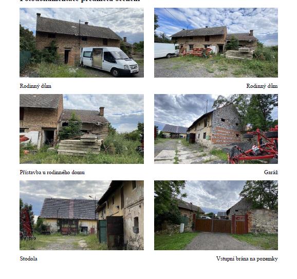Rodinný dům je samostatný objekt. Stavba má 2 nadzemní podlaží. Dům pravděpodobně není podsklepený. V objektu je půda a nemá vybudované podkroví. Základy má pravděpodobně kamenné, svislé konstrukce cihlové. Tloušťka obvodové konstrukce činí cca do 45 cm. Stropy jsou dřevěné trámové, střecha je sedlová, krytinu tvoří eternitové šablony a klempířské prvky chybí. Vnější omítky chybí a zateplení pláště není provedeno. U domu přístavba nespecifikovaného využití. Objekt byl postaven odhadem na začátku 20. století a ke dni ocenění je přibližně 100 let stár. Vnitřní omítky jsou vápenocementové. Okna jsou dřevěná zdvojená. Vnitřní vybavení zcela dožité, chybějící či zdemolované, dům nelze obývat. Podlahová plocha vč. Příslušenství 100m2. Napojení na sítě nebylo možné zjistit, předpokládá se odpojení od všech sítí s možností napojení na sítě, které jsou v obci dostupné. Stavebně technický stav je hodnocen na základě vizuálního posouzení stavby. Na stavebně technický stav zaklopených konstrukcí nebo konstrukcí, jejichž stav nelze bezdemontážní technikou zjistit, je usuzováno nepřímo. Stavebně technický stav objektu lze charakterizovat jako špatný. Veškeré konstrukční prvky jsou za hranicí životnosti s viditelným poškozením. Celková výměra pozemku činí 1963 m2. Sklon pozemku je rovinatý. Pozemek je oplocený v části zděným plotem. Samostatná garáž situovaná na parc. č. st. 14/1. Jedná se o dvoupodlažní nepodsklepený objekt se sedlovou střechou, založení na kamenných základech, svislé konstrukční prvky zděné klasickým způsobem, pravděpodobně ze smíšeného zdiva (cihla / kámen / tvárnice), stavebně technický stav špatný. Dále se na pozemku nachází rozměrná zděná stodola, která není zapsána v katastru nemovitostí i přes to, že svými rozměry nesplňuje parametry vedlejší stavby. Jedná se o nepodsklepenou jednopodlažní stavbu s vysokou sedlovou střechou, svislé konstrukce zděné klasickým způsobem pravděpodobně ze smíšeného zdiva (kámen/cihla). Stavebně technický stav spíše špatný.