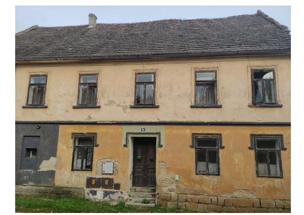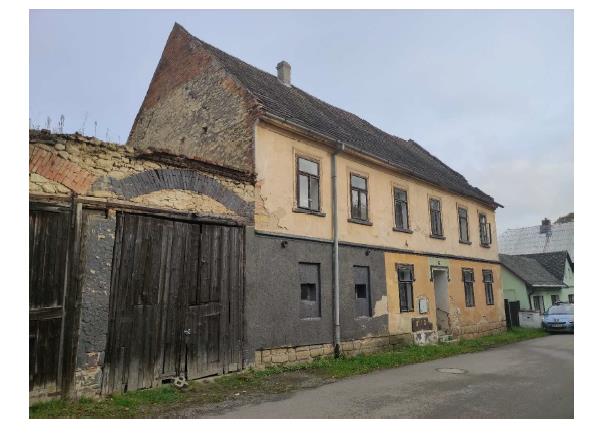 Rodinný dům je krajní objekt v řadě rozrůzněných staveb. Stavba má 2 nadzemní podlaží. Dům není podsklepený. V objektu je půda a nemá vybudované podkroví. Základy má smíšené a objekt je smíšené konstrukce. Tloušťka obvodové konstrukce činí 60 cm. Stropy jsou dřevěné trámové, střecha je sedlová, krytinu tvoří bobrovka a klempířské prvky jsou pozinkované. Vnější omítky jsou vápenocementové a zateplení pláště není provedeno. Objekt byl postaven odhadem v roce 1850 - 1880. Stav objektu lze charakterizovat jako špatný. Dispozice rodinného domu je 5+1. Podlahová plocha vč. Příslušenství 218,80 m2. Rodinný dům je ve špatném stavu.