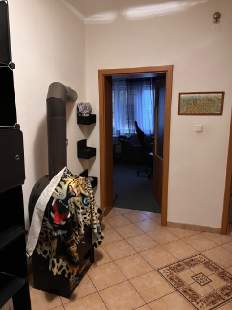 • má samostatný vchod - původní vchodové dveře dřevěné, prosklené, které nejsou bezpečnostní