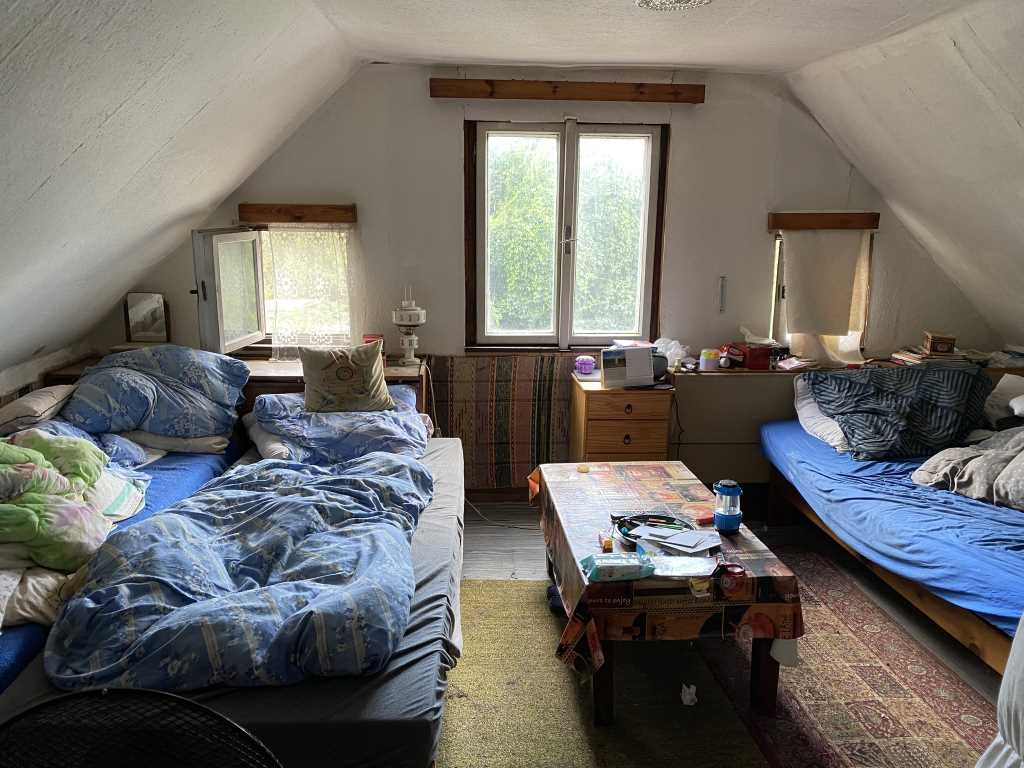 Rekreační objekt je samostatně stojící stavba s 1 nadzemním podlažím a obytným podkrovím. Stavba není podsklepená. Základy má betonové izolované a konstrukce objektu je smíšená (dřevěná a zděná). Stropy jsou dřevěné trámové, střecha je sedlová, krytina je plechová a klempířské prvky jsou pozinkované. Vnější omítky jsou břízolitové a zateplení pláště není provedeno. Objekt byl postaven na základě sdělení přítomné osoby kolem roku 1950 jako přízemní stavba. Kolem roku 1980 byl původní objekt přestavěn – zvětšena zastavěná plocha a vybudováno obytné podkroví. Objekt je v původním stavu, pouze v roce 2020 byla provedena výměna střešní krytiny a částečná výměna oken. Stav objektu lze charakterizovat jako před rekonstrukcí. V rekreačním objektu se nachází 2 bytové jednotky o dispozici 2+1. Podlahová plocha vč. příslušenství 92,00 m2. Okna v objektu jsou plastová s dvojsklem a dřevěná zdvojená. Obytné místnosti jsou orientované na sever a jih. Kuchyňské vybavení tvoří kuchyňská linka bez vestavěných spotřebičů. Objekt není vybaven hygienickým zařízením. Na pozemku se nachází suché WC. Interiérové dveře jsou dřevěné prosklené, zárubně jsou ocelové a vchodové dveře jsou dřevěné a plastové.