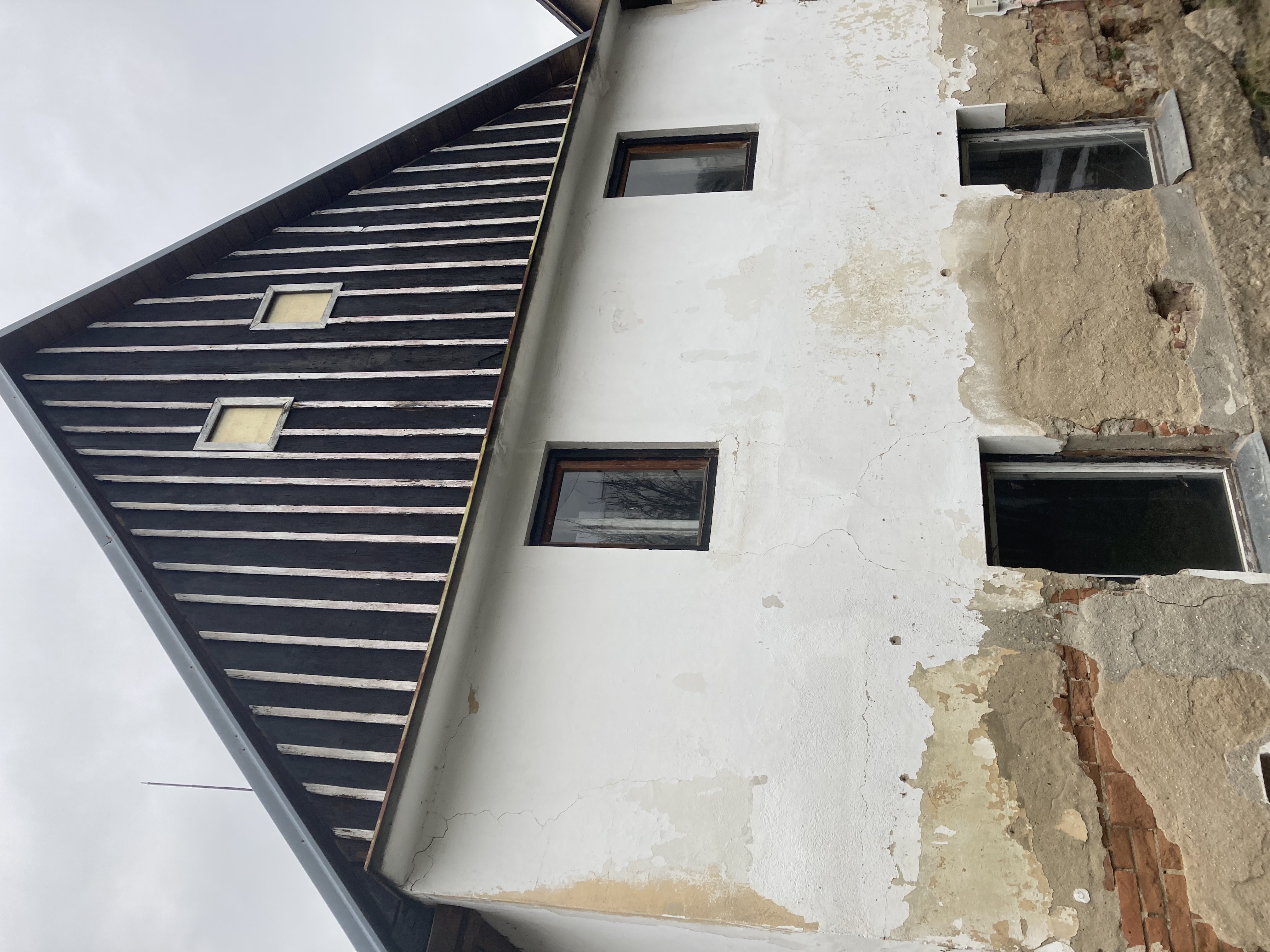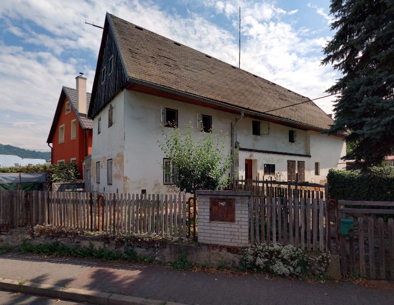 Rodinný dům v centru obce určený k celkové rekonstrukci. Dům je patrový se sedlovou střechou. Nosné zdivo kámen, cihla, tvárnice. Z části odstraněna vnitřní omítka. Dům napojen na vodovod, kanalizaci, elektřinu. Topení lokální. Zastavěná plocha domu 111 m2, podle LV jsou v domě dva byty. Na pozemku se nachází garáž. Celková plocha pozemku cca 500 m2.