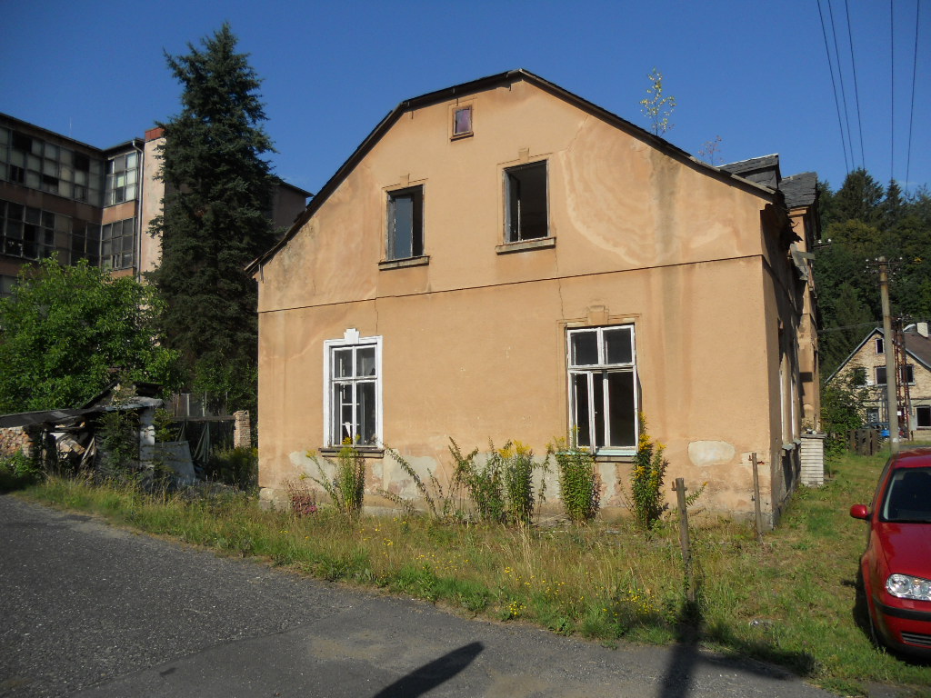 Základy má smíšené bez izolací, konstrukce objektu je zděná, tloušťka stěn je 45 cm a stropy jsou tvořeny dřevěnými trámy. Tvar střechy je sedlový – po stranách omezený půlvalbami, střešní krytina je tvořena eternitovými šablonami a klempířské prvky jsou plechové, případně zcela chybí. Vnější omítky jsou tvořeny břízolitem a zateplení pláště není provedeno. Podlahová plocha činí odhadem 150 m2. Vnitřní omítky jsou vápenocementové. Jsou zde instalována špaletová okna. Orientace obytných prostor je na sever, jih, východ, západ. V domě není žádné vybavení, chybí veškeré instalace, interiéry jsou poničené. V obytných místnostech jsou prkenné podlahy, v kuchyni je na podlaze teraco, v koupelně jsou podlahy tvořeny cementovým potěrem a v chodbě je položena keramická dlažba. Objekt je odpojen od dodávek energií. Zdrojem vody je pravděpodobně vodovod, odpady jsou svedeny do septiku za domem pravděpodobně s přepadem do potoka či trativodem. U paty domu je pilíř na plynovou přípojku. Dům je bez vytápění a nejsou zde namontována topná tělesa. Objekt nedisponuje zdrojem teplé vody. Stav domu je špatný, stěny vykazují známky poškození, praskliny, střecha je prakticky v dezolátním stavu, okna jsou v dezolátním stavu, podlahy jsou poškozeny – místy se v patře propadají, vybavení, rozvody, výplně otvorů jsou v dezolátním stavu, případně zcela chybí. Dům je určen ke kompletní rekonstrukci, a to i prvků dlouhodobé životnosti. Pozemek je rovinatý, neudržovaný, zarostlý travinami. Na pozemku se nachází ovocný strom a keře. Oplocení domu tvoří v části dřevěný plot v dezolátním stavu – v části oplocení zcela chybí. Přístup k objektu je bezproblémový po zpevněné obecní cestě. Možnost parkování je dobrá - přímo u objektu. Součástí jsou tyto venkovní stavby: torzo zděné garáže – garáž je z části zborcena, k odstranění.