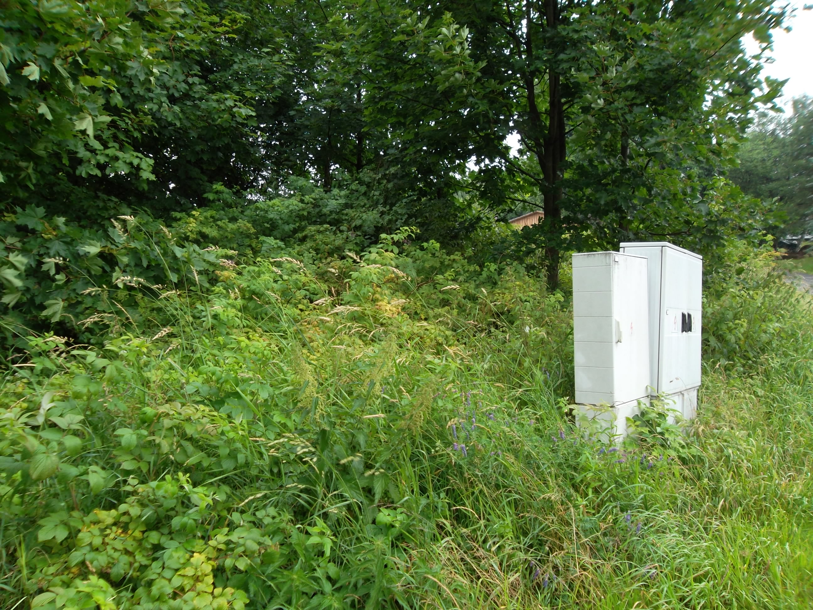 Na pozemku se nachází náletové dřeviny v hustém zápoji, přes které není rozestavěná stavba patrná. Pozemek je přístupný z veřejné komunikace.
