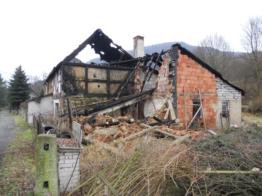 Rodinný dům je značně poničen po rozsáhlém požáru. Během provedení místního šetření nebylo umožněno objekt prohlédnout uvnitř, což by i vzhledem ke stavebně technickému stavu bylo značně rizikové. Jedná se o samostatný objekt, který má celkem 2 nadzemní podlaží s provedenou jednopodlažní přístavbou. Dům pravděpodobně nemá podsklepení, je zde půda a obytné podkroví není vybudované. Objekt byl postaven přibližně na konci 19. století, čemuž odpovídá typ konstrukce a použitých materiálů. K domu je provedena zděná přístavba, jejíž stáří lze odhadovat na ca. 20 let.