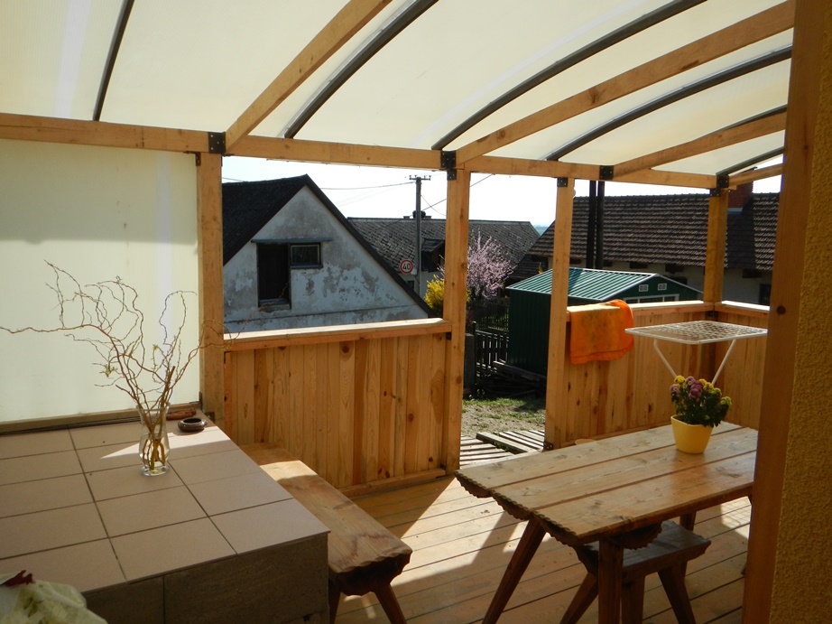 Na pozemku jsou ovocné a okrasné stromy, oplocení tvoří dřevěný plot a samotný pozemek je svažitý. Domu přiléhá krytá terasa a zastřešené parkovací stání. Přístup k objektu je bezproblémový po zpevněné obecní cestě. Parkovací možnosti jsou na vlastním pozemku.