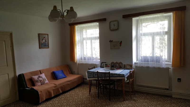 Dispozičně je dům řešen jako 4+1. Podlahová plocha činí 145,50 m2. Vnitřní omítky jsou vápenné. Okna jsou plastová s dvojsklem nebo dřevěná zdvojená. Orientace obytných prostor je na severovýchod, jihovýchod. V koupelně se nachází klasická vana, umyvadlo a na WC je klasická toaleta. Vnitřní dveře jsou dřevěné plné, dřevěné prosklené, zárubně jsou dřevěné a vchodové dveře jsou dřevěné. V kuchyni se nachází kuchyňská linka bez vestavěných spotřebičů, plynový sporák. Osvětlovací prvky tvoří běžná osvětlovací technika. V obytných místnostech je podlaha betonová s krytinou textilní nebo PVC, v kuchyni je položeno PVC, v koupelně je položena keramická dlažba a v chodbě je na podlaze teraco. V ostatních místnostech je podlaha řešena: cementový potěr, teraco.