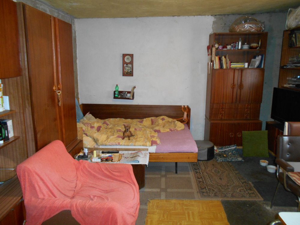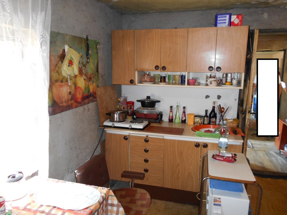 Rodinný dům je řadový objekt a má jedno nadzemní podlaží. Dům je částečně podsklepený, nachází se zde půda a nemá vybudované obytné podkroví. Objekt byl postaven odhadem v roce 1930. V roce 1998 proběhla rekonstrukce těchto konstrukčních prvků: zdroj vytápění - modernizace, WC - částečná, kuchyně - modernizace, dále v roce 2008: rozvody elektřiny - celková. Základy jsou tvořeny betonem bez izolace, objekt je smíšené konstrukce, tloušťka stěn je 80 cm a stropy jsou dřevěné trámové. Tvar střechy je sedlový, střešní krytinu tvoří pálená taška a klempířské prvky jsou plechové. Vnější omítky objektu: břízolitové, z větší části chybí a stavba není zateplena. Podlahová plocha činí 55,39 m2. Podlahová plocha vč. příslušenství činí 59,89 m2, objekt je dispozičně řešen jako 2+kk. Rodinný dům nemá vnitřní omítky. Jsou zde jednoduchá dřevěná okna, příslušenství oken chybí. Obytné prostory mají orientaci na jihovýchod. Koupelna není vybudována a v prádelně před domem je klasická toaleta. V domě jsou dřevěné plné interiérové dveře, zárubně dveří jsou ocelové a vchodové dveře jsou dřevěné. Vybavení kuchyně: kuchyňská linka bez vestavěných spotřebičů, elektrický dvouvařič. Pro osvětlení jsou použity lustry. V obytných místnostech je podlaha řešena: cementový potěr, lino, v kuchyni je podlaha řešena: cementový potěr, lino, v koupelně jsou podlahy tvořeny cementovým potěrem a v chodbě je podlaha řešena: keramická dlažba, lino. V ostatních místnostech je cementový potěr. Do domu je zavedena elektřina o napětí 230V a je připojen k rozvodné síti elektrického proudu. Objekt je napojen na studnu s užitkovou vodou, odpad – přípojka veřejné kanalizace před domem, jímka na pozemku a přípojka zemního plynu před domem. Dům je vytápěn lokálně pomocí kamen a nejsou zde namontována topná tělesa. V domě je pro ohřev vody instalován bojler. Stěny objektu jsou zastaralé, střecha domu je zastaralá, okna jsou zastaralá, podlahy jsou podstandardní, vybavení objektu je podstandardní a rozvody v domě jsou zastaralé. Stav rodinného domu je špatný. Pozemek je bez porostů a plot pozemku tvoří zděný plot, drátěný plot s podezdívkou. Samotný pozemek je rovinatý. K objektu je bezproblémový přístup po zpevněné obecní cestě. Jsou zde omezené parkovací možnosti v blízkosti objektu. Součástí jsou tyto venkovní stavby: chlívky.
