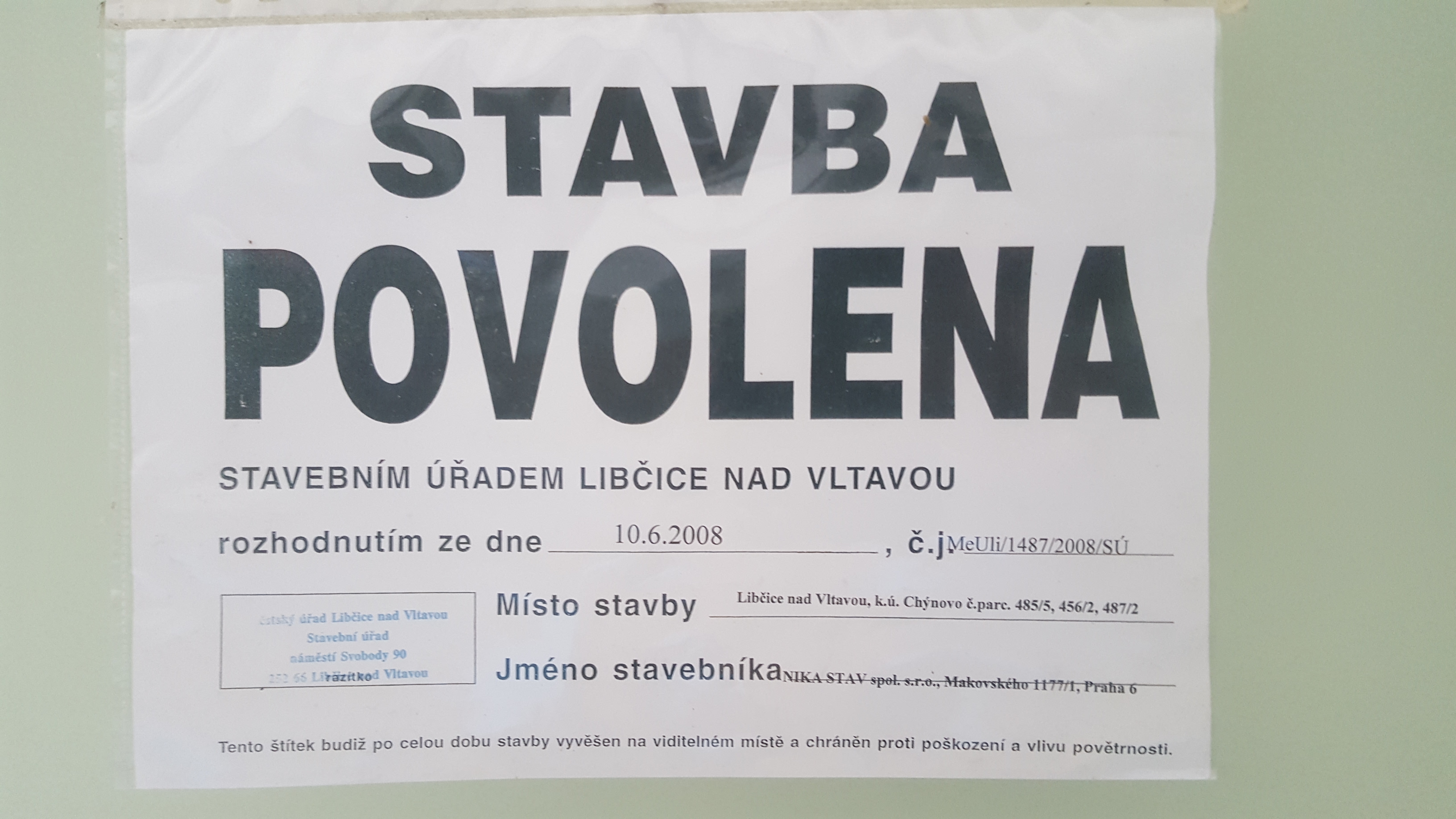 Rozestavěný rodinný dům je umístěný na poz. parc. čís. 485/5. Stavba rodinného domu započala v roce 2008 na základě Souhlasu s provedením stavby ze dne 10.06.2008 vydaného stavebním úřadem Libčice nad Vltavou pod č.j.:MeUli/1487/2008/SÚ: Souhlas s provedením ohlášené stavby – zhotovení rodinného domu o jedné dvougenerační bytové jednotce na pozemku 485/5, žumpa na pozemku č. 456/2, přípojka elektro a vodovodní na pozemku č. 487/2 a 485/5, kanalizační přípojka na pozemku 485/5 a 456/2, kú. Chýnov.