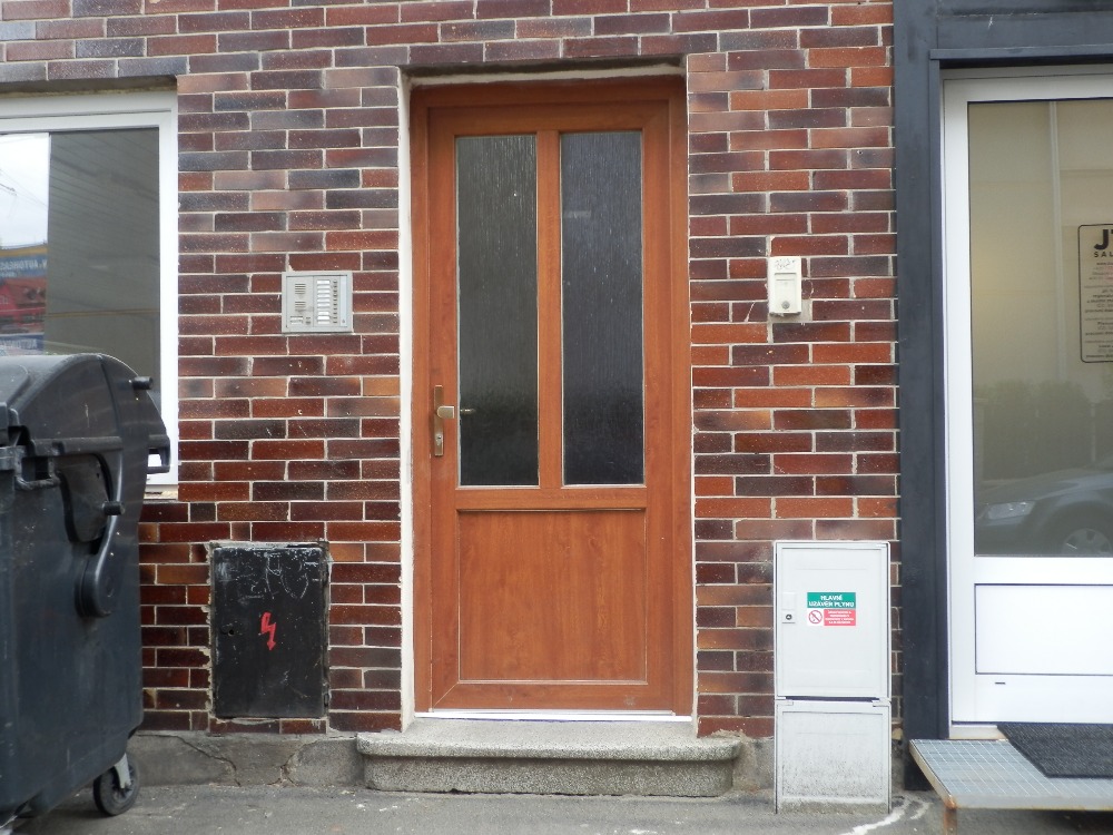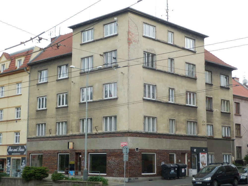 Konstrukční řešení a vybavení (domu a bytu):Stavba má svislé nosné konstrukce zděné se založením na základových pasech, střecha je z části valbová s taškovou krytinou, s části plochá, klempířské prvky jsou z pozinkovaného plechu, okna jsou dřevěná špaletová a plastová s izolačními dvojskly, fasádní omítky jsou hladké, do výše 1. nadzemního podlaží jsou vnější povrchy opatřeny keramickým fasádním obkladem, vnitřní omítky jsou hladké, v kuchyni a koupelně doplněné keramickými obklady, schodiště jsou betonová s teracovými stupni, dveře jsou dřevěné plné. Bytový dům má vnitřní rozvod el. proudu, plynu, vody včetně teplé, kanalizace, vytápění je ústřední z kotelny umístěné v domě, včetně přípravy teplé vody. Některé konstrukce domu byly již obnoveny, nap ř. část původních oken byla vyměněna za plastová s izolačními dvojskly, vyměněny vchodové dveře, apod. Na domě nejsou patrné statické nebo jiné vážnější stavební závady. Exteriér domu vykazuje známky zanedbané údržby, opadání omítky, keramické obklady poškozeny graffiti. Byt je v současné době podle telefonického vyjádření manžela spoluvlastnice pronajatý. Nájemní smlouva nebyla předložena, doba trvání nájemního vztahu ani výše nájemného není známa.