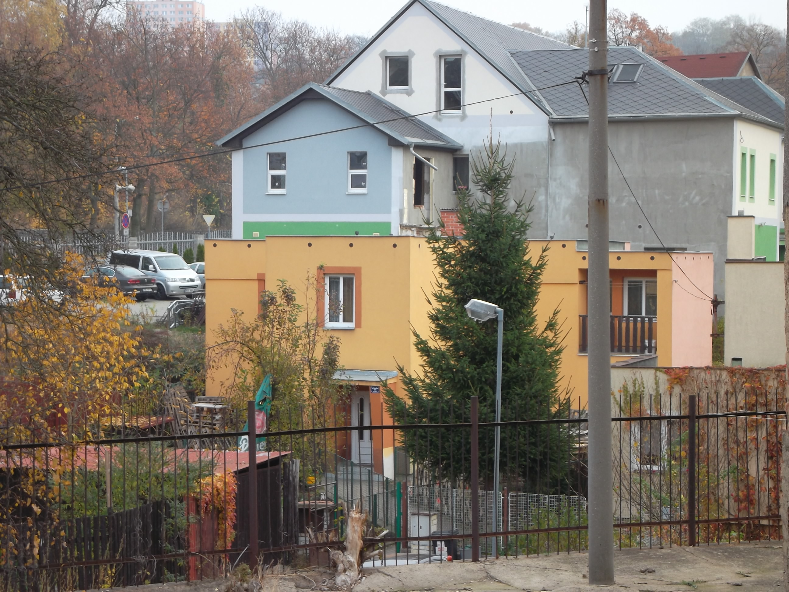 Prohlídka interiéru nebyla umožněna. Rodinný dům č.p. 62 je samostatně stojící stavba tvořící součást pozemku čís. parcely 66, k.ú. Krásné Březno. Dle sdělení syna spoluvlastníka má rodinný dům následující vnitřní dispozice: 1.PP (suterén) – místnosti sklepa , 1.NP (přízemí), 2.NP (1.patro), kde se nalézají dvě bytové jednotky o velikosti 2+1 a 3+1. Dům asi z roku 1930 je po celkové rekonstrukci, velmi dobře udržovaný, jeho stavebnětechnický stav odpovídá stáří a provedeným úpravám. Na pozemku se dále nachází přípojky inženýrských sítí – jako vody, elektrické energie, zřejmě kanalizace, zpevněné plochy, oplocení a trvalé porosty. Pozemky jsou přístupné z pozemku čís. parcely 46 o výměře 839 m2, k.ú. Krásné Březno, vedeného v katastru nemovitých věcí v druhu pozemku ostatní plocha - ostatní komunikace, vlastník Statutární město Ústí nad Labem. Přístup na pozemky čís. parcel 67/1 a 66 se stavbou č.p. 62 je však veden mezi pozemkem čís. parcely 46, ostatní plocha, ostatní komunikace ve vlastnictví města Ústí nad Labem ještě přes další pozemky, a to: - pozemek čís. Parcely 67/2, zahrada, ve vlastnictví Statutárního města Ústí nad Labem. Výše uvedený pozemek čís. parcely 67/2 není veřejnou komunikací, právní důvod užívání nebyl doložen.
