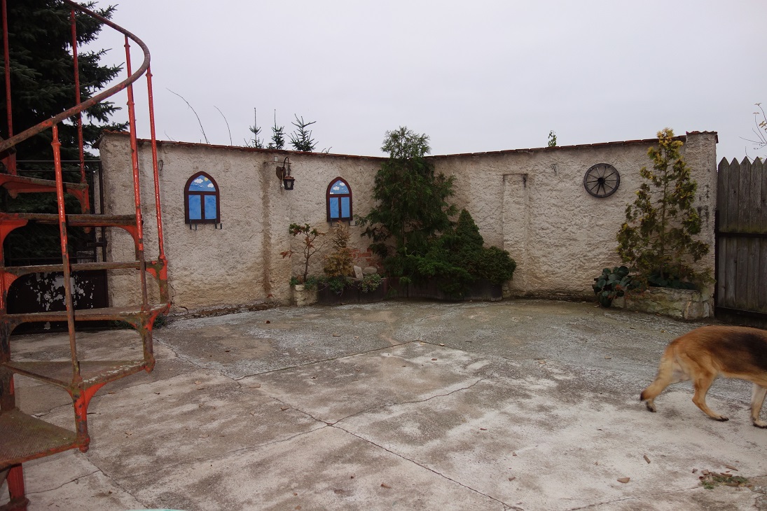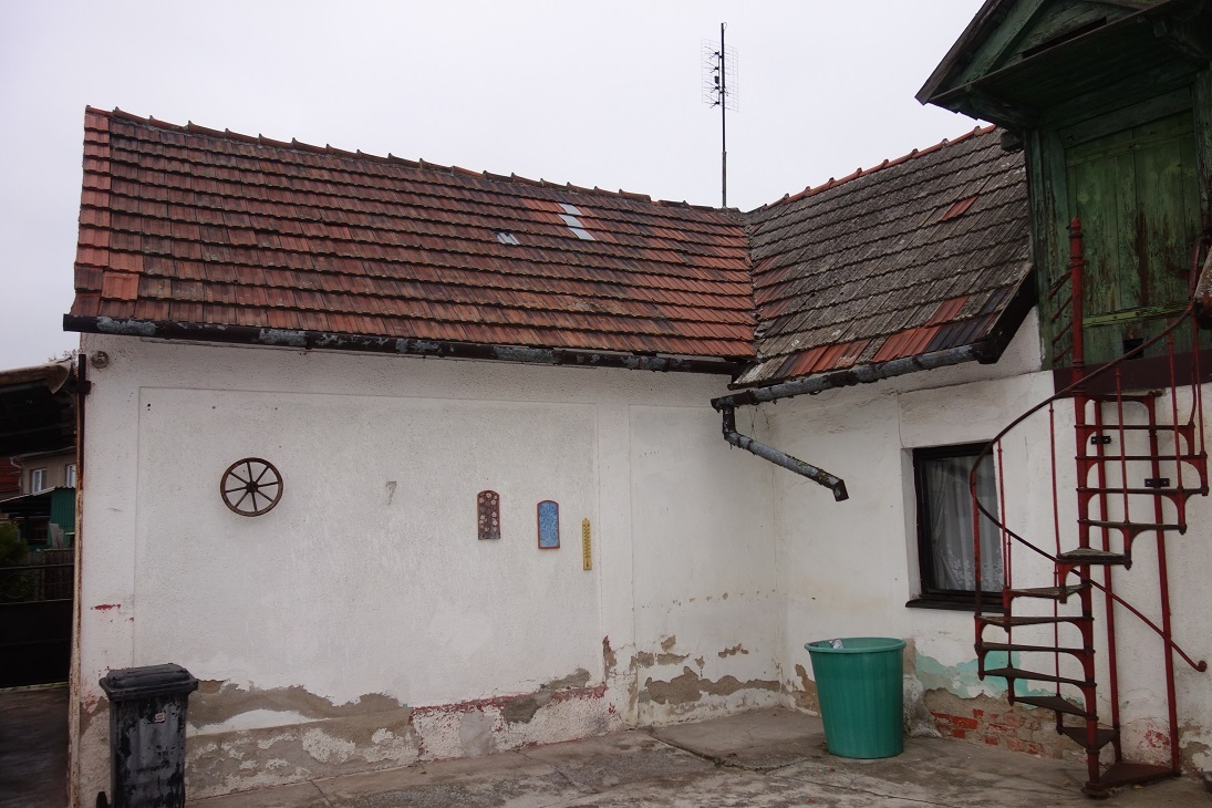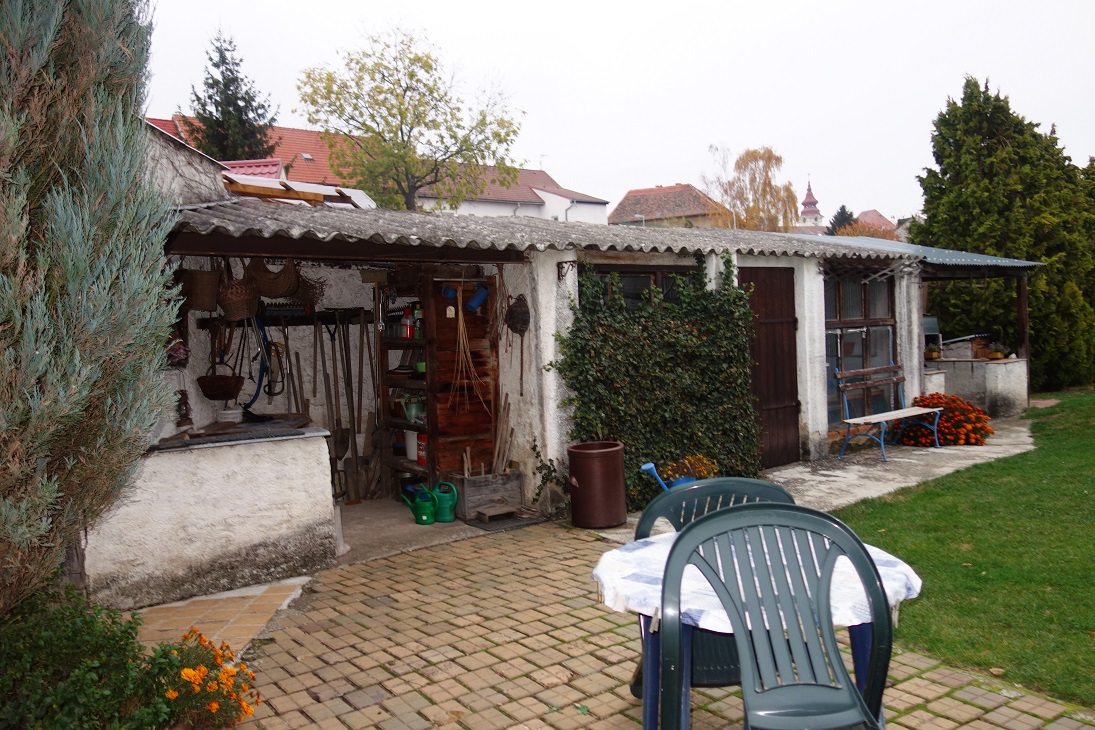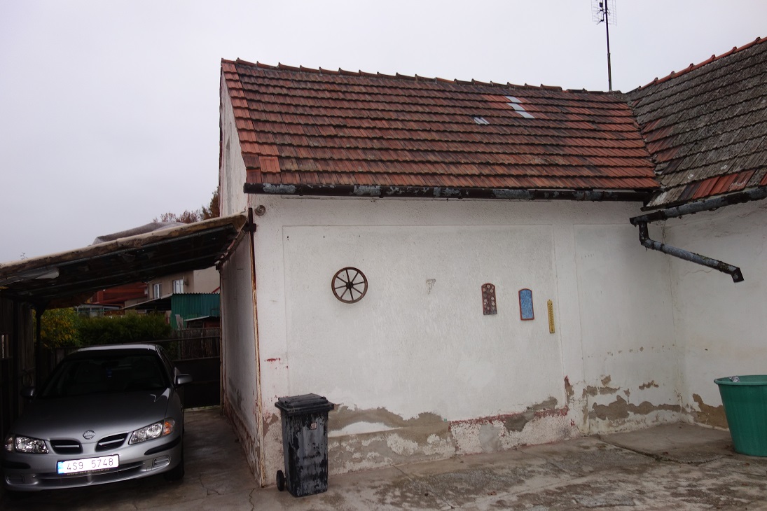 dílny či skladu trojúhelníkového půdorysu, podlaha beton, dveře hladké plné dvoukřídlé, okno dřevěné jednoduché, na stavbu navazuje otevřený přístřešek a zděná stavba kolny a další navazující přístřešek, stavby stojí na parcele č. 109, nejsou zapsány ani zakresleny v katastru nemovitostí, střecha je pultová s mírným sklonem, střešní krytina vlnitý eternit, okna dřevěná jednoduchá. Další stavby v příslušenství domu jsou tvořeny přístřeškem krytého stání pro 1 osobní automobil, navazující na jižní štítovou stranu rodinného domu, lehké dřevěné konstrukce, se zastřešením pultového tvaru a venkovními úpravami standardního rozsahu – přípojky inženýrských sítí, žumpa, oplocení, plotová vrátka, zpevněné plochy apod. Další stavby v příslušenství (přístřešek a venkovní úpravy). Pozemek čís. parcely 108, jedná se o stavební pozemek zcela zastavěný rodinným domem. Pozemek čís. parcely 109, navazuje na pozemek čís. parcely 108 západní hranicí, je užívaná jako zázemí – zahrada domu. Pozemek je udržovaný, oplocený s trvalými porosty a venkovními úpravami.