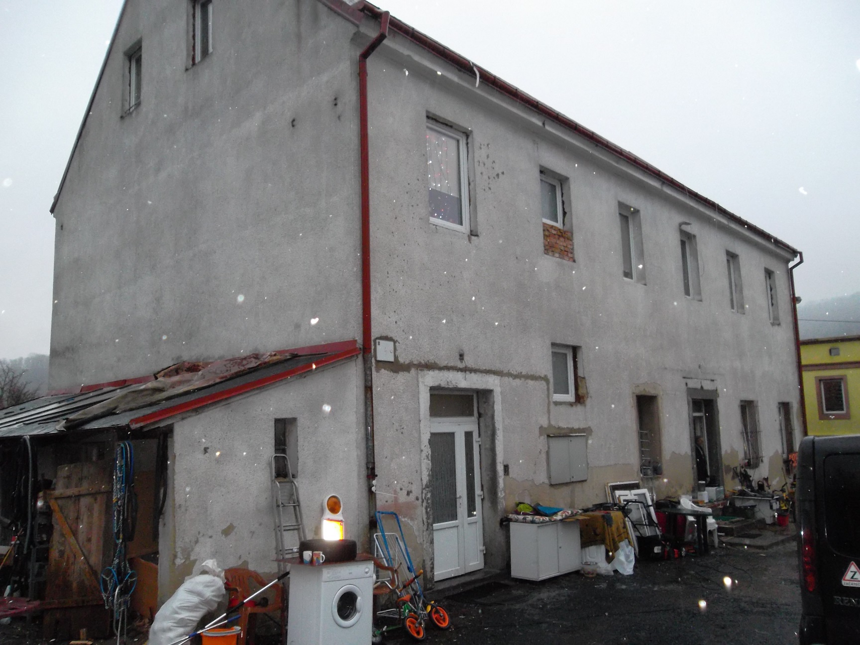 Rodinný dům byl postaven jako samostatný objekt a má celkem 2 nadzemní podlaží. Dům nemá podsklepení, nachází se zde půda a nemá vybudované obytné podkroví. Objekt byl postaven odhadem v roce 1910. V roce 2006 proběhla rekonstrukce těchto konstrukčních prvků: okna - celková, koupelna - celková, WC - celková, podlahy - částečná, vnitřní dveře - celková, vnitřní povrchy - celková. Základy má smíšené, konstrukce objektu je smíšená, stěny mají tloušťku 60 cm a stropy jsou z dřevěných trámů. Střecha je sedlová, střešní krytina je plechová s nátěrem a klempířské prvky jsou plechové pozinkované. Vnější omítky jsou tvořeny břízolitem a zateplení pláště není provedeno. Objekt je dispozičně řešen jako 4+1. V domě se nachází obývací pokoj s kuchyňským koutem o výměře 53,00 m2, pokoj o výměře 20,58 m2, chodba o výměře 23,90 m2, koupelna o výměře 6,10 m2, WC o výměře 2,20 m2, pokoj o výměře 17,10 m2, pokoj o výměře 10,40 m2, schodiště o výměře 45,00 m2, sklad o výměře 37,00 m2, sklad o výměře 77,00 m2, WC o výměře 4,00 m2, půda o výměře 150,00 m2. Podlahová plocha činí 296,28 m2. Podlahová plocha vč. příslušenství činí 446,28 m2. Vnitřní omítky: vápenocementové, štukové. Jsou zde instalována plastová okna s dvojsklem. Orientace obytných prostor je na jih, východ, západ. Vybavení koupelny tvoří rohová vana, sprchový kout, umyvadlo a na WC je klasická toaleta. V domě jsou dřevěné plné interiérové dveře, zárubně dveří jsou ocelové a vchodové dveře jsou plastové. Vybavení kuchyně: kuchyňská linka bez vestavěných spotřebičů, elektrický sporák. Pro osvětlení jsou použity lustry. V obytných místnostech je podlaha řešena: laminátová plovoucí podlaha, keramická dlažba, kuchyně má na podlaze keramickou dlažbu, koupelna má na podlaze keramickou dlažbu a v chodbě je keramická dlažba. V ostatních místnostech je položena keramická dlažba. Součástí vybavení domu jsou okenní mříže v 1. NP. Do domu je zavedena elektřina o napětí 230V a je napojen na rozvodnou síť elektrického proudu. Do objektu je zaveden vodovod, odpadní vody jsou svedeny do kanalizace a zemní plyn není zaveden. Řešení vytápění v domě: elektrické přímotopy, krbová vložka a nejsou zde namontována topná tělesa. V domě je pro ohřev vody využíván bojler. Stěny objektu jsou bez vad (kromě opadávající venkovní omítky), střecha je v jednom místě poškozena, okna v objektu jsou bez vad, podlahy v objektu jsou bez závad, vady vybavení nejsou a v objektu jsou rozvody bez vad. Stav rodinného domu je dobrý. Na pozemku jsou okrasné dřeviny a plot pozemku tvoří pletivo do ocelových sloupků. Samotný pozemek je mírně svažitý. K objektu je bezproblémový přístup po zpevněné obecní cestě. Parkovací možnosti jsou na vlastním pozemku.