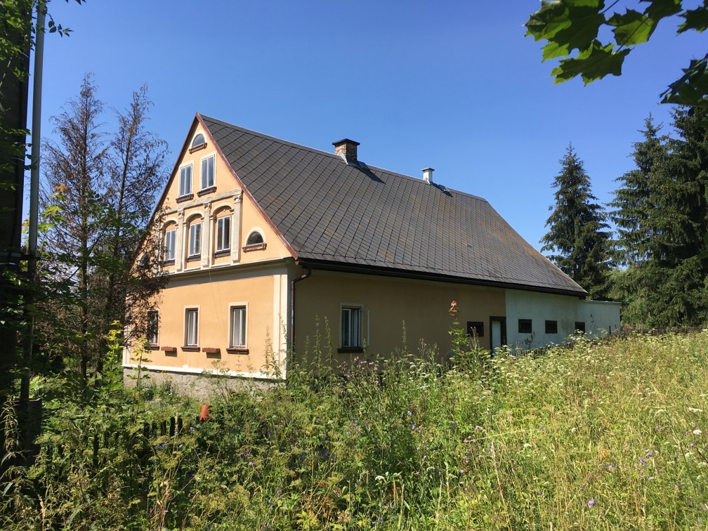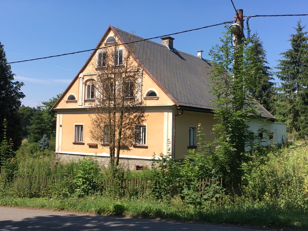 Rodinný dům byl postaven jako samostatný objekt a má jedno nadzemní podlaží. Dům je částečně podsklepený, je zde půda, obytné podkroví není vybudované. Letopočet na objektu uvádí, že dům byl postaven v roce 1866. Základy má kamenné, konstrukce objektu je kamenná, tloušťka stěn je 80 cm. Stropy jsou z části dřevěné trámové, z části je zde kamenná klenba. Tvar střechy je sedlový, střešní krytinu tvoří eternitové šablony a klempířské prvky jsou pozinkované. Vnější omítky jsou vápenné a stavba není zateplena. V letech 1991 – 1992 byla provedena celková rekonstrukce objektu. Dispozičně je dům řešen jako 3+kk. V domě se nachází obývací pokoj s kuchyňským koutem o výměře 36,54 m2, ložnice o výměře 19,69 m2, pokoj o výměře 20,98 m2, koupelna s WC o výměře 14,91 m2, chodba o výměře 30,57 m2, chodba s kotelnou o výměře 6,84 m2, sklep o výměře 21,00 m2, půda o výměře 175,00 m2, garáž o výměře 57,81 m2. Podlahová plocha činí 129,53 m2. Podlahová plocha vč. příslušenství činí 383,34 m2. Vnitřní omítky jsou vápenné. Jsou zde špaletová okna, příslušenství oken chybí. Obytné prostory jsou orientovány na jih, východ a z části na sever. Vybavení koupelny tvoří rohová vana, sprchový kout, umyvadlo a WC. V domě jsou použity dřevěné plné interiérové dveře, mají dřevěné zárubně a vchodové dveře jsou také dřevěné. V kuchyni je instalována kuchyňská linka bez vestavěných spotřebičů a kombinovaný sporák. Pro osvětlení jsou použity lustry. V obytných místnostech jsou na podlaze položeny koberce. V koupelně, v kuchyňském koutu a na chodbě je keramická dlažba. V ostatních místnostech jsou betonové podlahy. Další vybavení se v rodinném domě nenachází. Do objektu je zavedena elektřina o napětí 230V a 400V a dodávky zajišťuje rozvodná síť elektrického proudu. Objekt je připojen na vodovodní řad, zdrojem vody je také studna v přední části pozemku. Objekt je napojen na septik a zdroj plynu je řešen individuálně (plynová tlaková lahev). V domě je topení řešeno ústředně kotlem na tuhá paliva a topná tělesa tvoří závěsné radiátory. V domě je pro ohřev vody instalován bojler. Stěny objektu jsou bez vad, střecha je bez vady, okna jsou zastaralá, podlahy jsou zastaralé, vady vybavení nejsou a rozvody v objektu jsou bez vad. Rodinný dům je v dobrém stavu. Pozemek je neudržovaný, nachází se zde okrasné a ovocné dřeviny. Jako oplocení pozemku byl použit dřevěný plot a z části pletivo do ocelových sloupků. Samotný pozemek je mírně svažitý. K objektu je bezproblémový přístup po zpevněné obecní cestě. Je zde možnost parkování na vlastním pozemku.